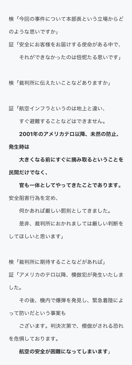 奥野被告は、先日の公判後、ピーチアビエーションオペレーション総括本部長の証言を『ノーマスクは爆弾テロと同じで、模倣犯が出ないよう処罰をなどと意味不明の持論を披露した』などとツイートしており、間に受けた方がいるようです。