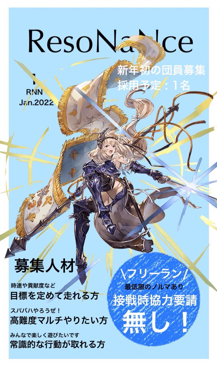 ResoNaNce #団員募集 です。救援周りの関係で入れ替わりが激しいので枠数未定。