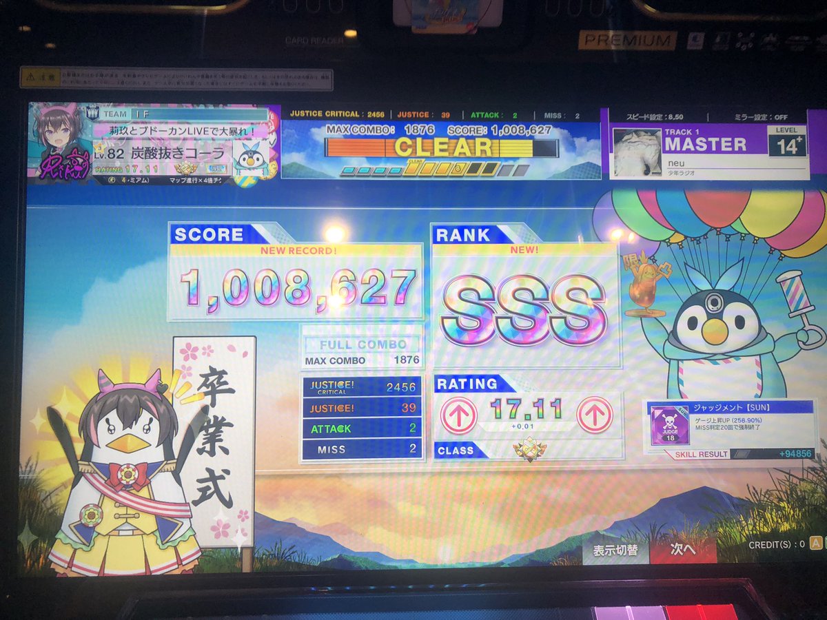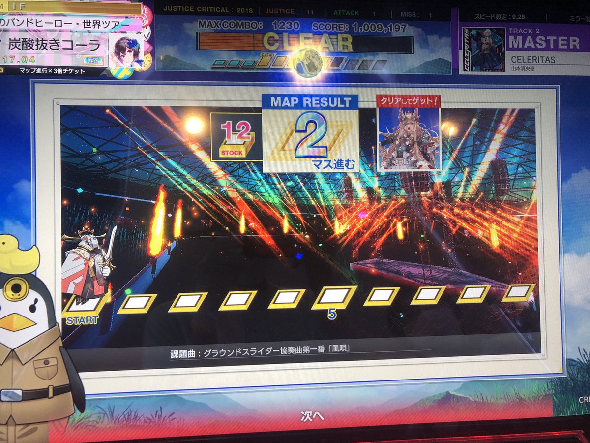 ちなみになんですが、通常マップの楽曲全解禁と宝物庫3ページ目まで全部走り切るのに112クレ使いました(捨てゲーなし、できるだけマップボーナス対象の曲やキャラを使用しています)