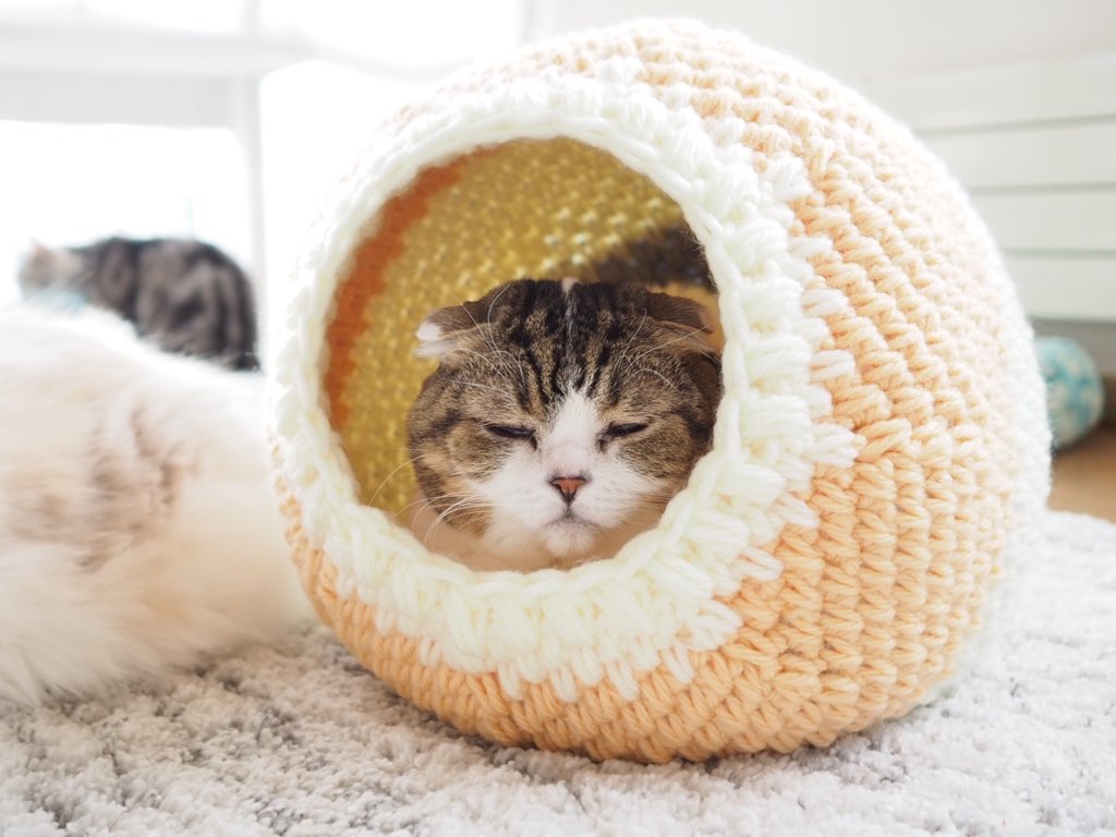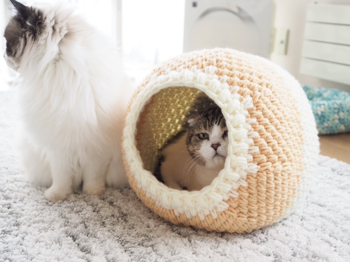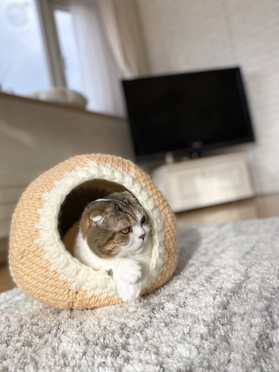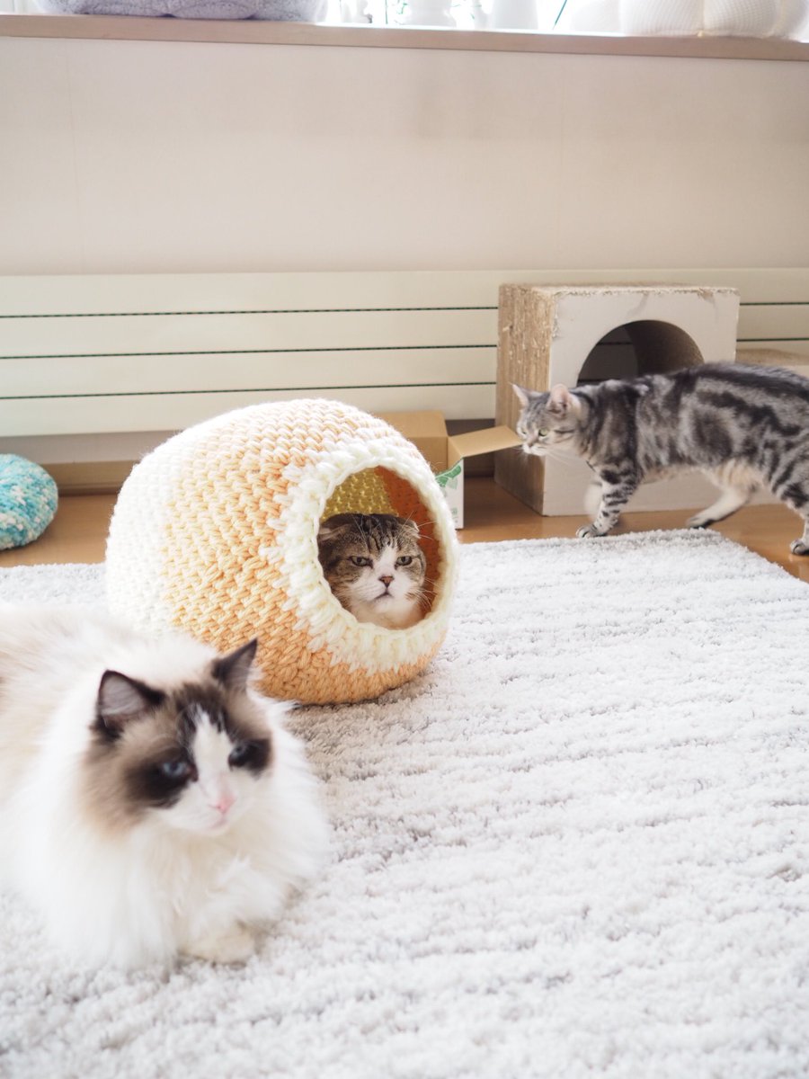 キャットドーム完成。たぷたぷの下っ腹も無事に通過しました✨