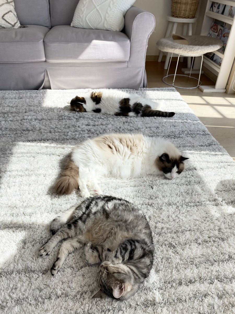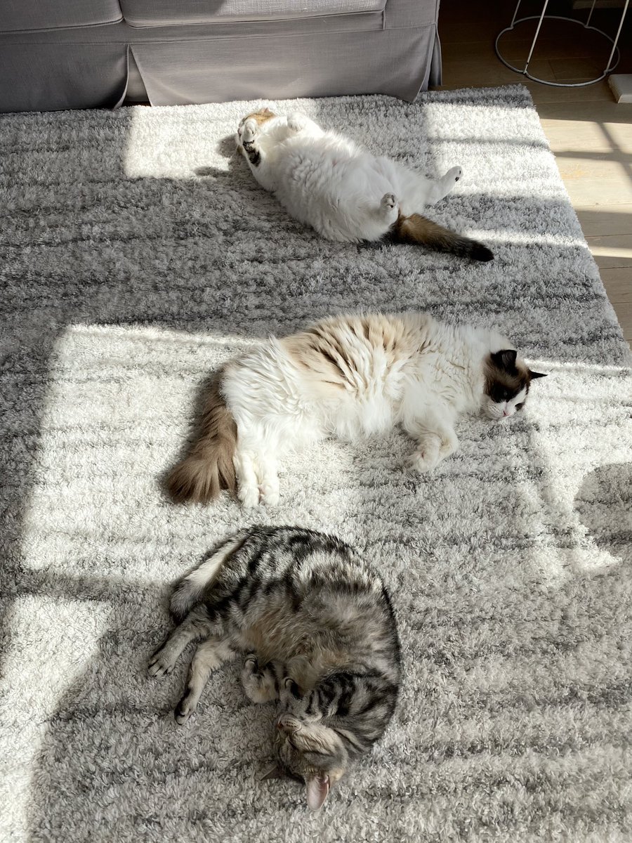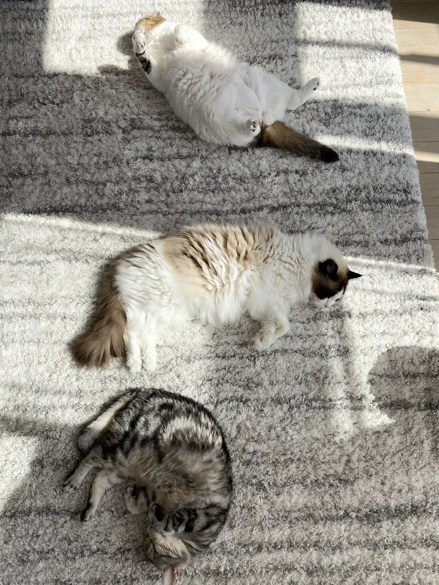 ごはん食べ終わったら、みんなで至福のゴロゴロタイム〜♪もちろん飼主も参加しまーす✋