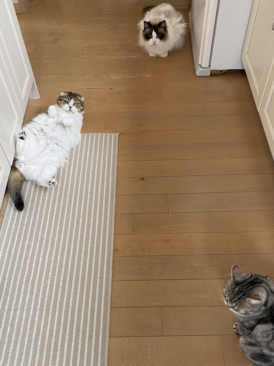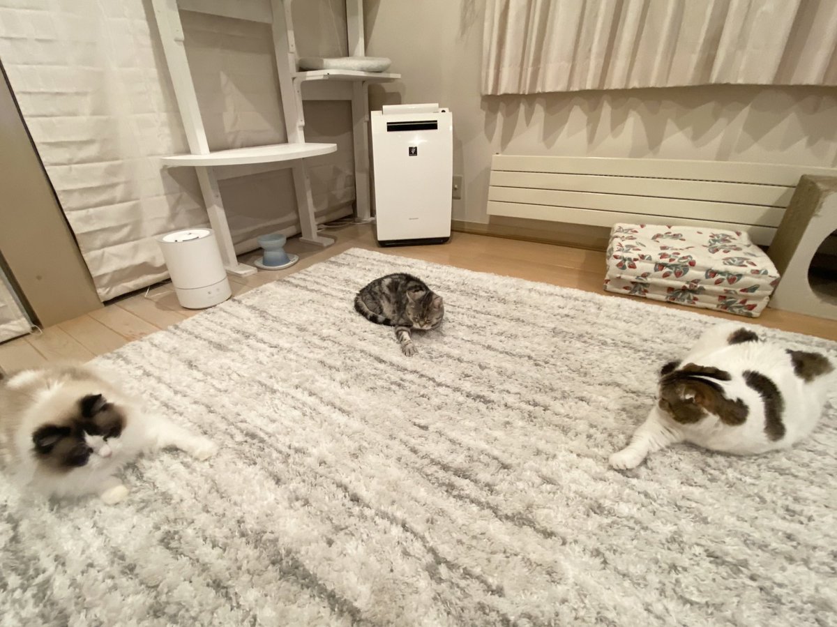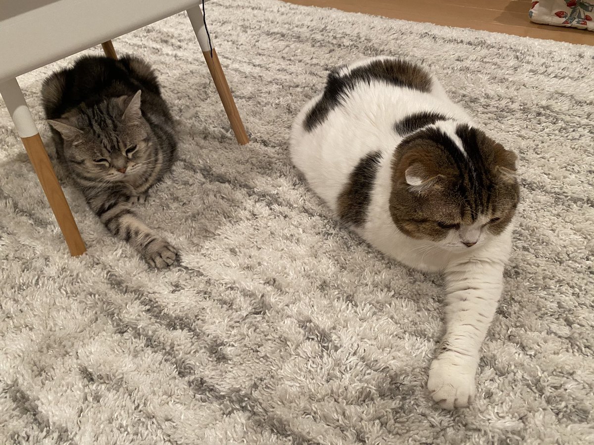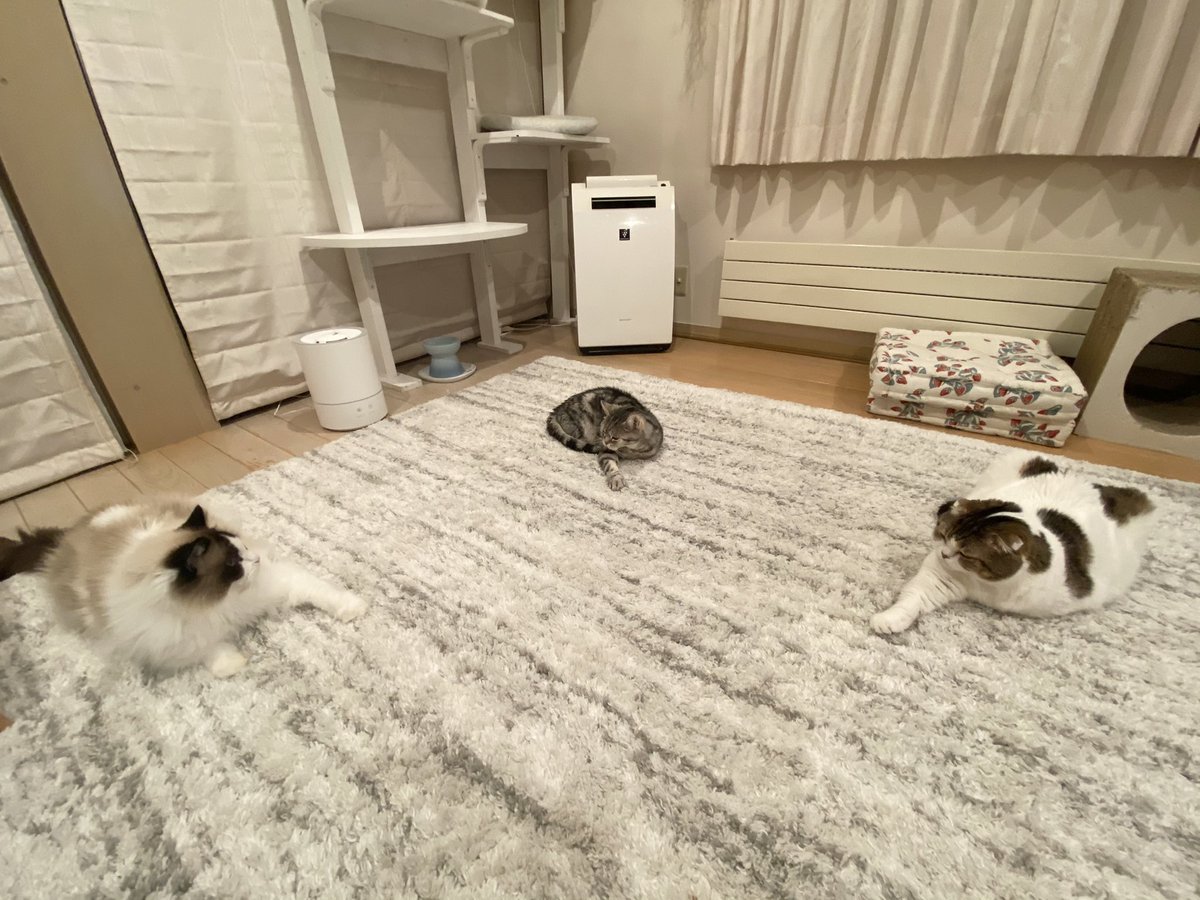 ごはん食べ終わったら、みんなで至福のゴロゴロタイム〜♪もちろん飼主も参加しまーす✋