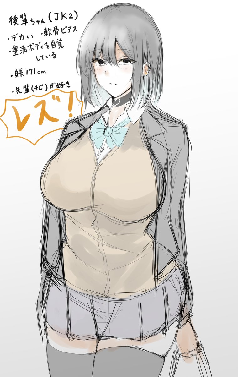 吾輩は先輩(メスガキ)と待ち合わせするデカ乳高身長後輩(レズ!!!!!!!!!!!!)のラフである。 名前はまだ無い。