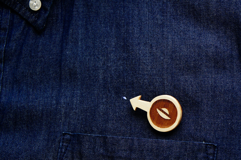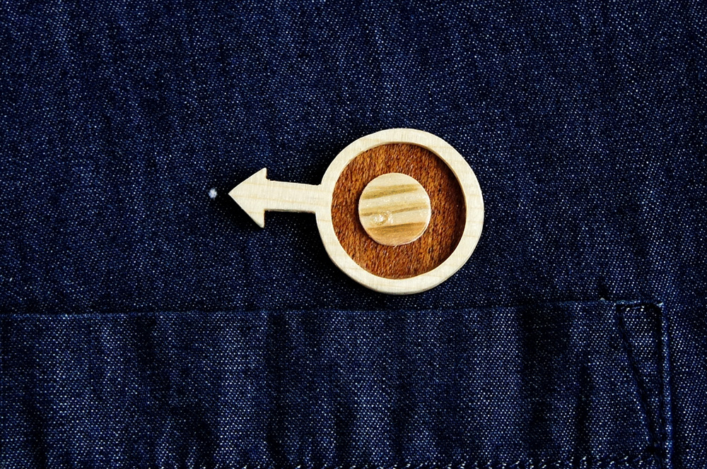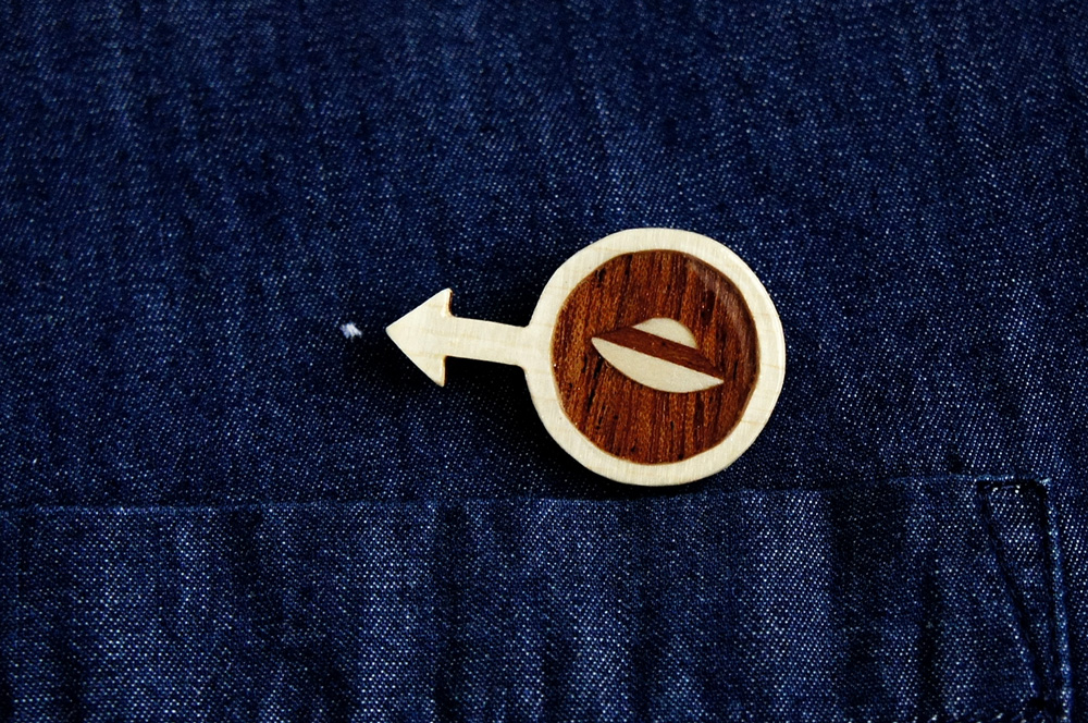 この木製のブローチを付けると、服やバッグに付いてしまったソレっぽい小さな染みや汚れが「拡大されたUFO」になるのです。