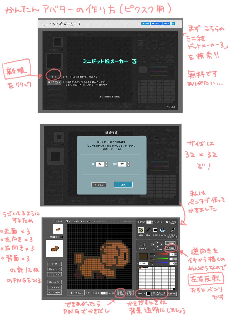 ピクスク用アバターのつくりかたメモです~ だいぶ雑です!!作りたいけどやり方わからない…って人がいたら参考にしてみてください 雑ですが…(大事なことなので2回言う)