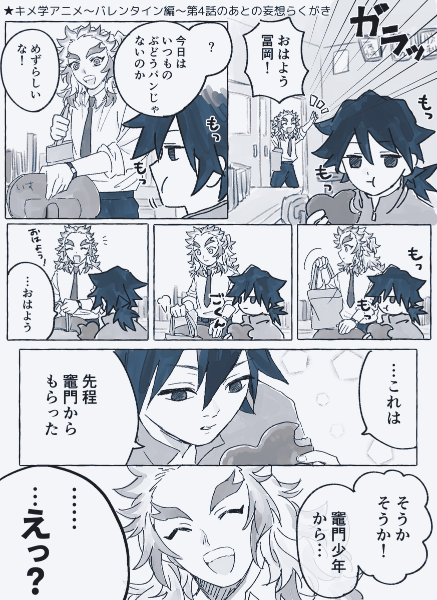 あのチョコレートパン、ぎゆ先生がそのまま職員室で食べだして誤解生まれてほしい…と思うなどした(※煉炭)