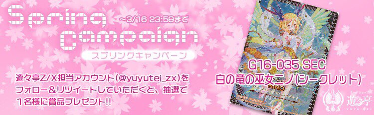 遊々亭Twitterキャンペーン! このアカウントをフォローし、本ツイートを公式RTして頂いた方から1名様に「CVR ペクティリスP(サイン入り)」をプレゼント! yuyu-tei.jp/game_zx/