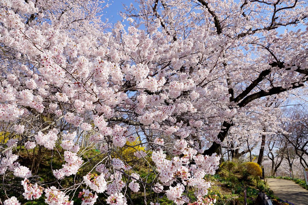 柴田町船岡城址公園にて 2019年しばた桜まつり開催中! 白石川堤の一目千本桜と言えば・・・賑わっている千桜橋付近も絶景ではありますが、こちらも仕上がって来ましたよ★ JR船岡駅を起点に桜並木の下をぐるっと一周出来る「さくら回廊」 所要時間は一時間程なので、是非歩いてみて下さい。