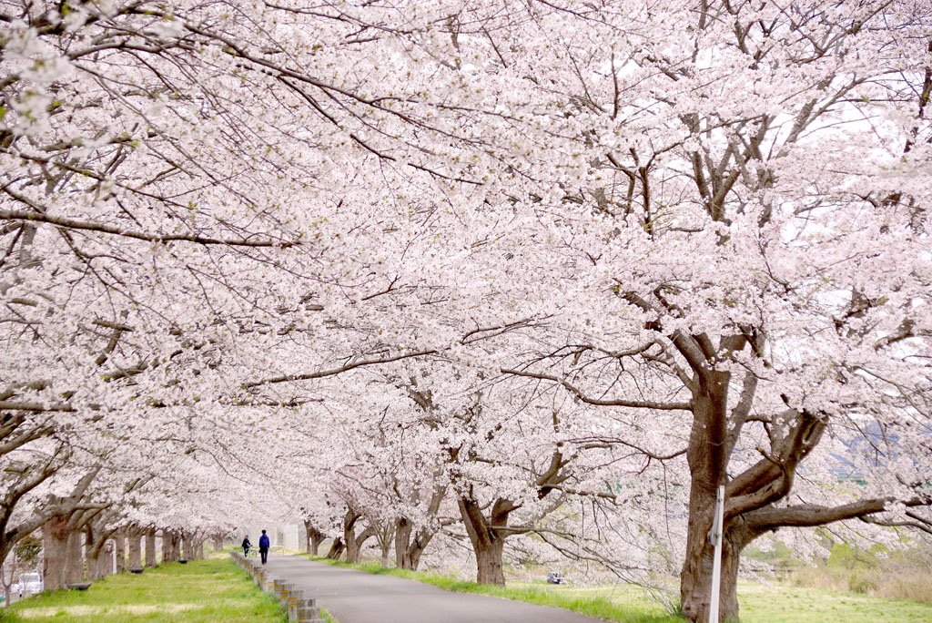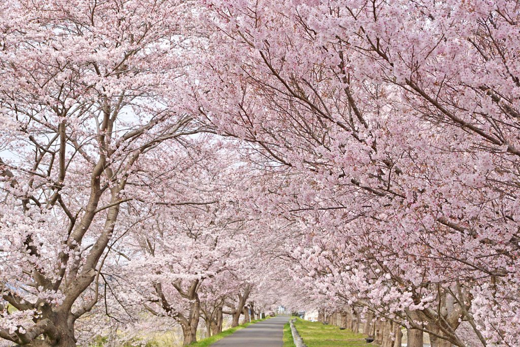 2018年しばた桜まつり開催中! 白石川堤一目千本桜の今朝の「さくら回廊」 こちらもまだ満開です。 マナーを守ってお楽しみ下さい★