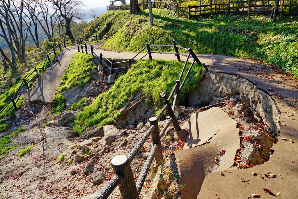 柴田町船岡城址公園から 山頂方面へは(あの台風以来)久々でした。 話に聞いていた通り、あちこち崩れていて大変な事になっています。桜の時期までに復旧出来ればいいんですけど・・・。 そんな訳でスロープカーは暫く運休。あと今年のイルミネーションも残念ながら中止です。嗚呼