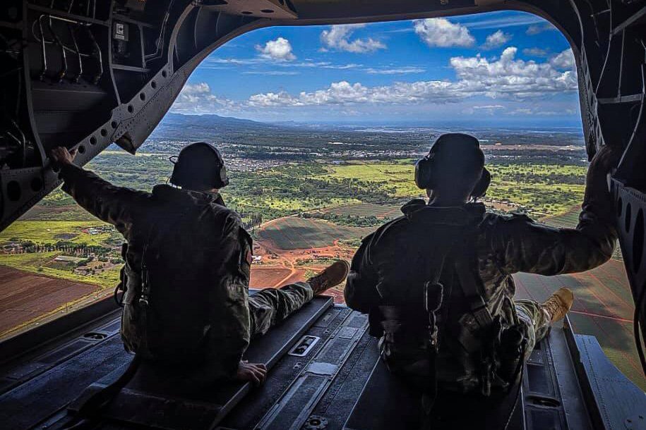 *写真は、CH-47チヌークから見たハワイ・オアフ島上空。
