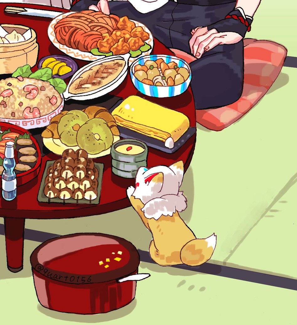 私無意識にこんのすけの後ろ姿好きなのかもしれない…こんのすけの後ろ姿ばっかり描いてる(その割には脚の模様忘れている)