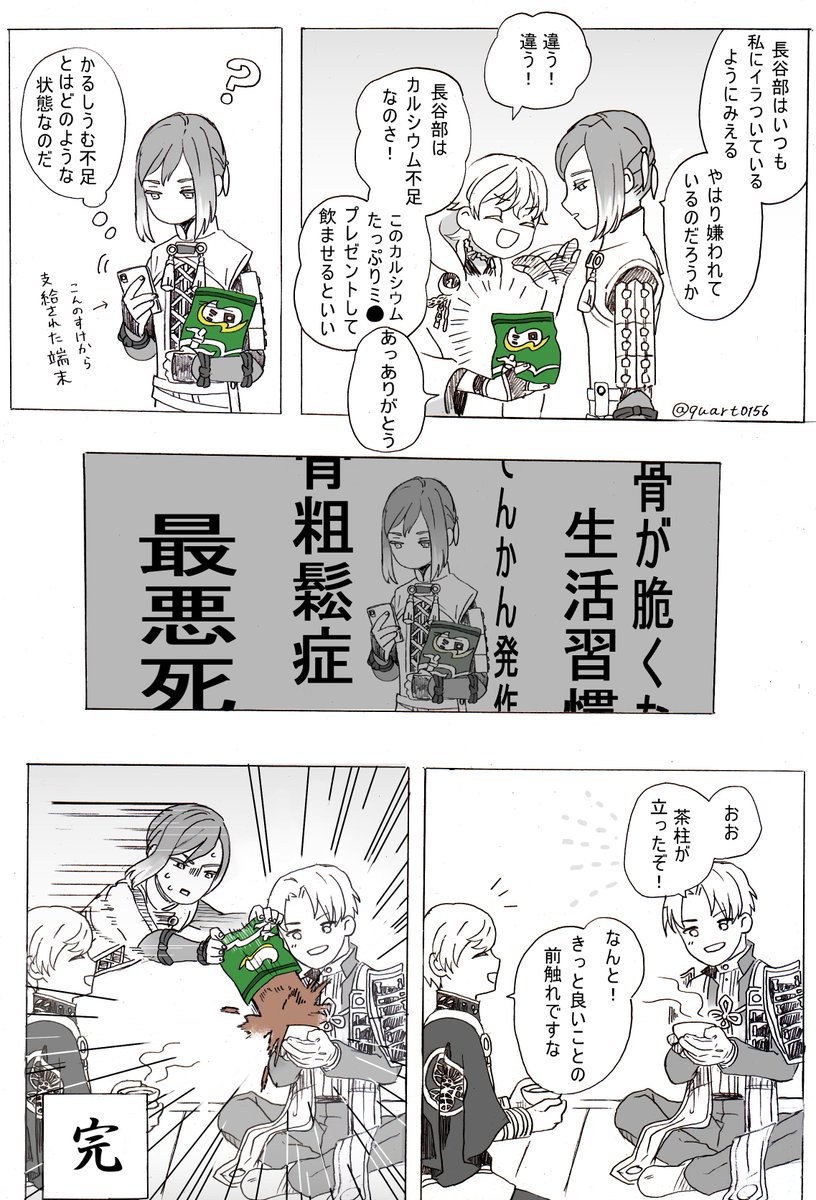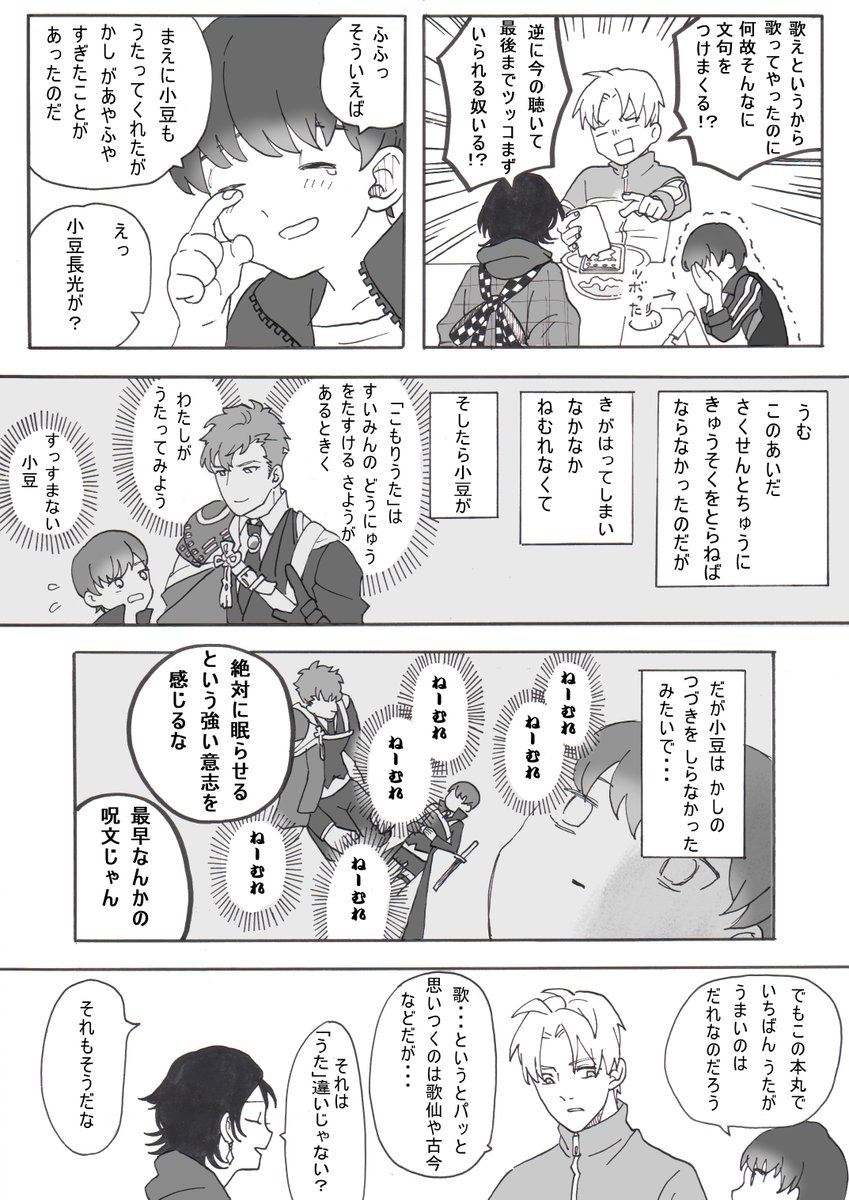 御手杵は身長的に審神者の顔よりつむじ見てる時間の方が長いんじゃないかなと思って描いた謎マンガ