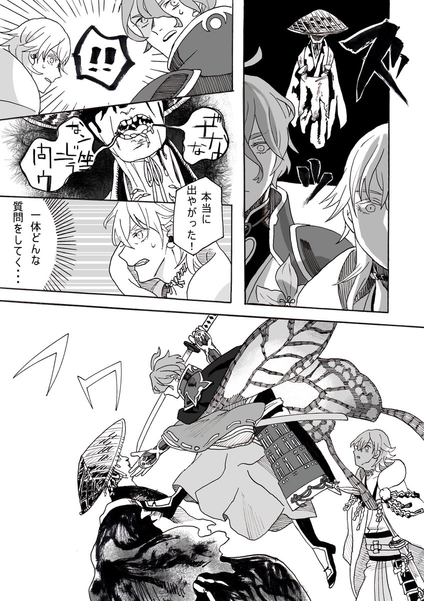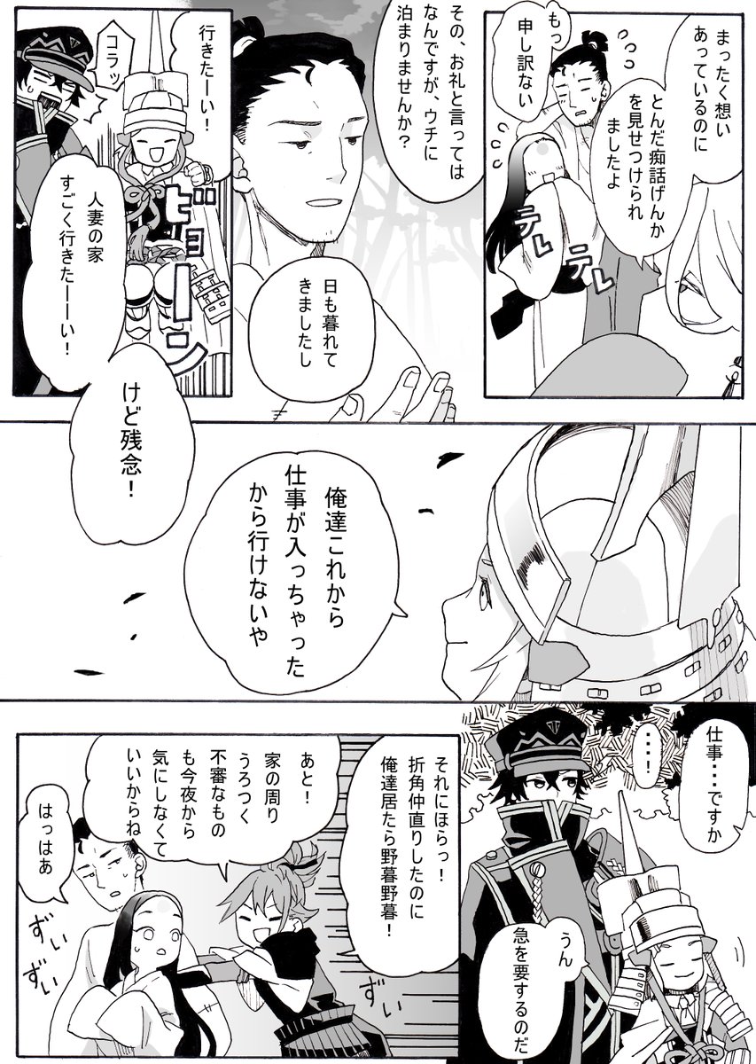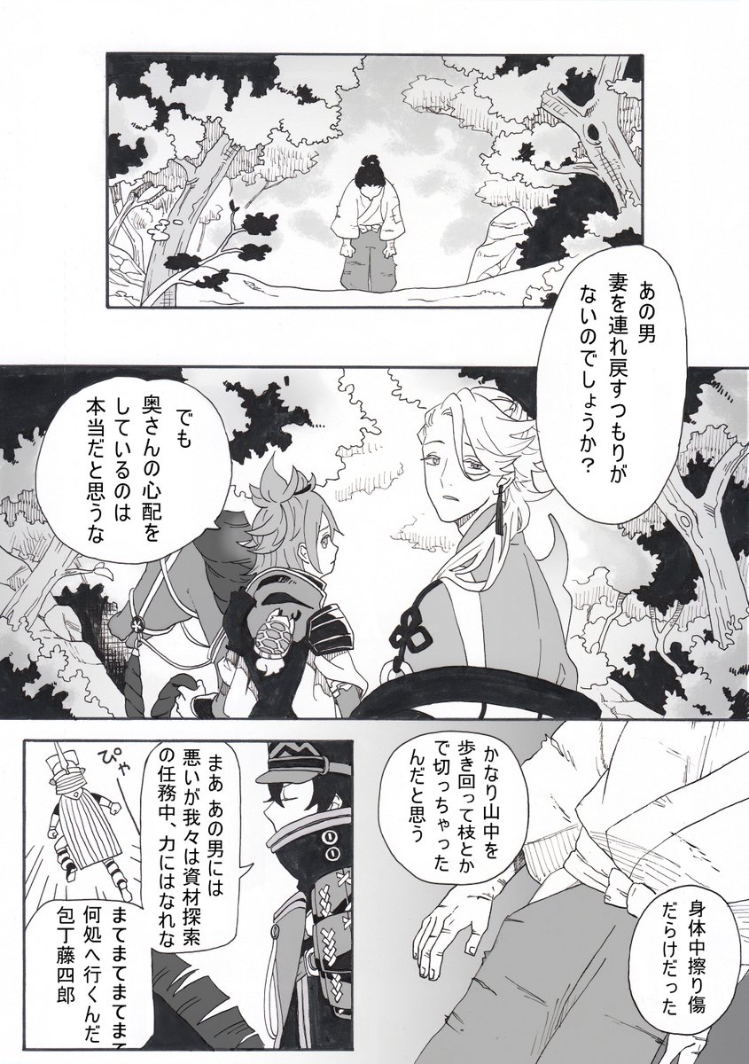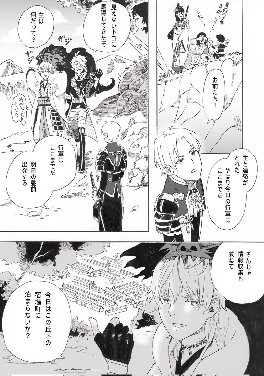 とうらぶ漫画(再掲) 任務先でちょっとした怪異に出会う話①~⑥ ※時代設定とか諸々ふわっと適当ですのでふわっと適当に読み流してください