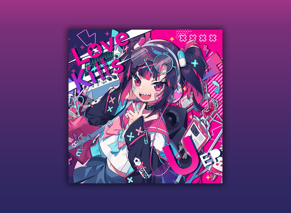 【告知】エモコサインさんの新譜『Love Kills U』のイラスト制作及び、ジャケットや盤面などアルバム全体のデザインを担当させていただきました。