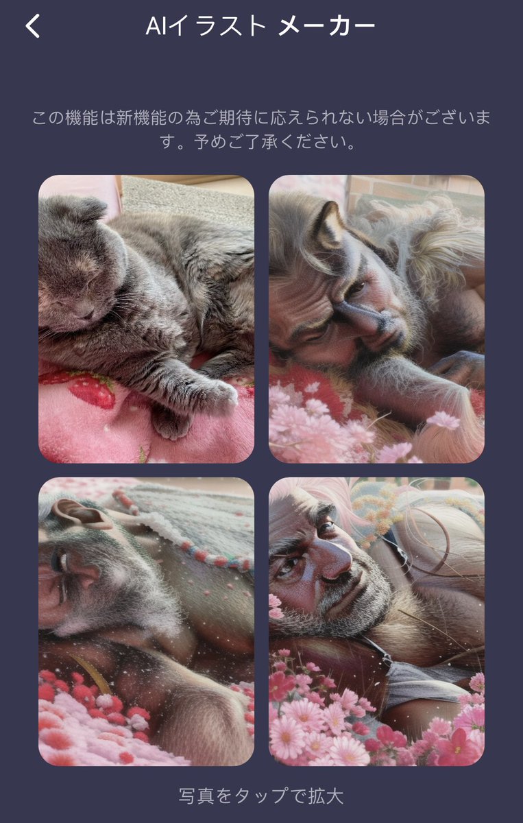 話題のAIイラストメーカー。皆んな可愛いく出来てて良いな〜って思ってうちの猫たんやってみたら、胸毛のセクシーなおじさんになったんだけどなんで😂 腹痛い😂一生笑ってる
