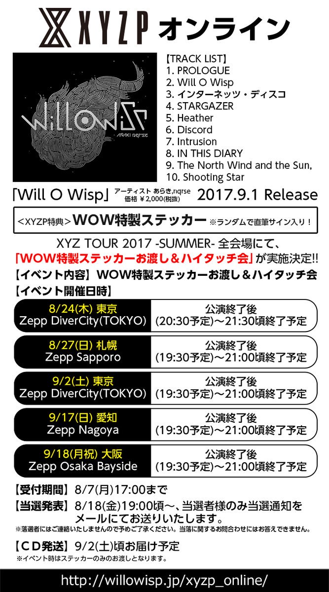 あらきnqrseアルバム「Will O Wisp」XYZPオンラインにて予約販売中!