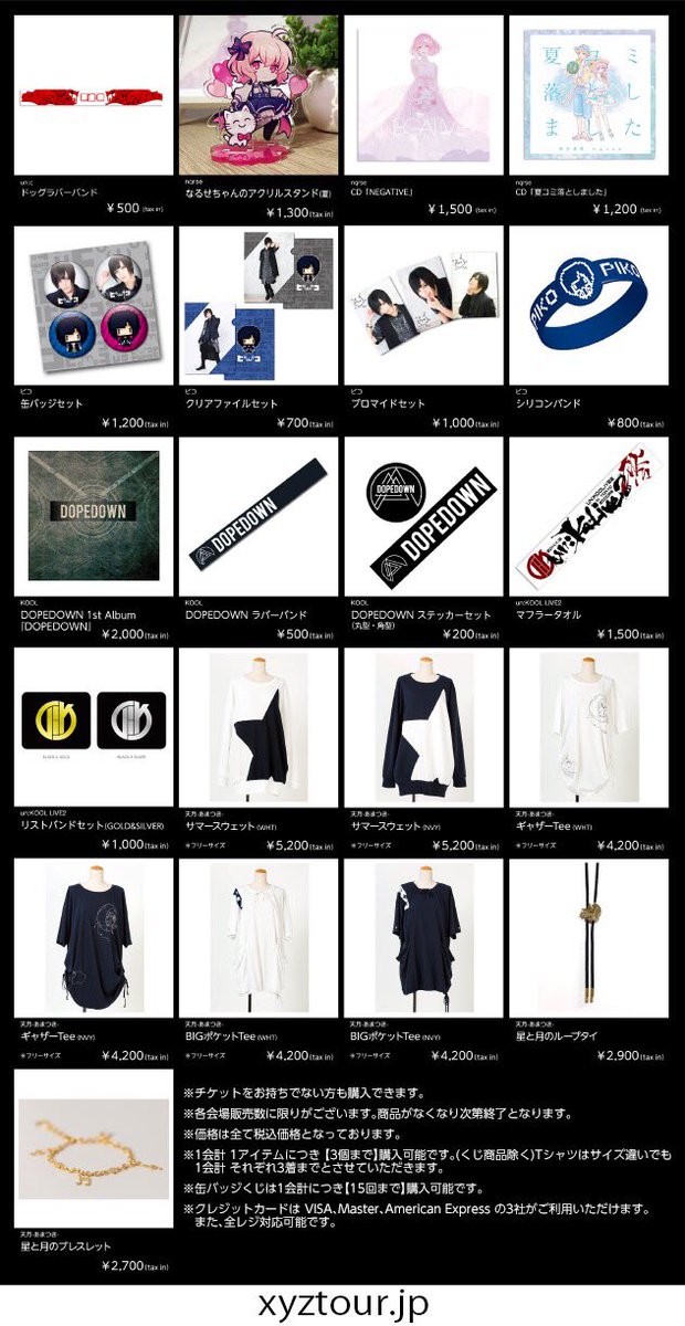 【XYZ TOUR 2017 -SUMMER- グッズ情報!】