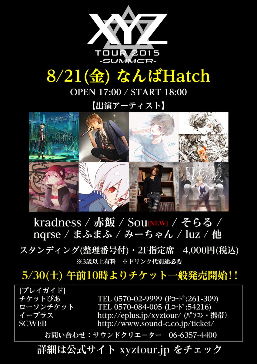 XYZ大阪!【8/21(金) なんばHatch】kradness・赤飯・Sou・そらる・nqrse・まふまふ・みーちゃん・luz他 5/30(土)10時より一般発売開始!xyztour.jp #XYZTOUR