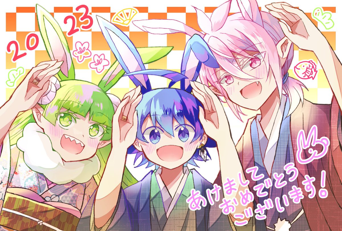 🎍🌅あけ魔しておめでとうございます❗️🍊☀️🐇 今年もよろしくお願いします❗️ うさぎポーズ(?)です