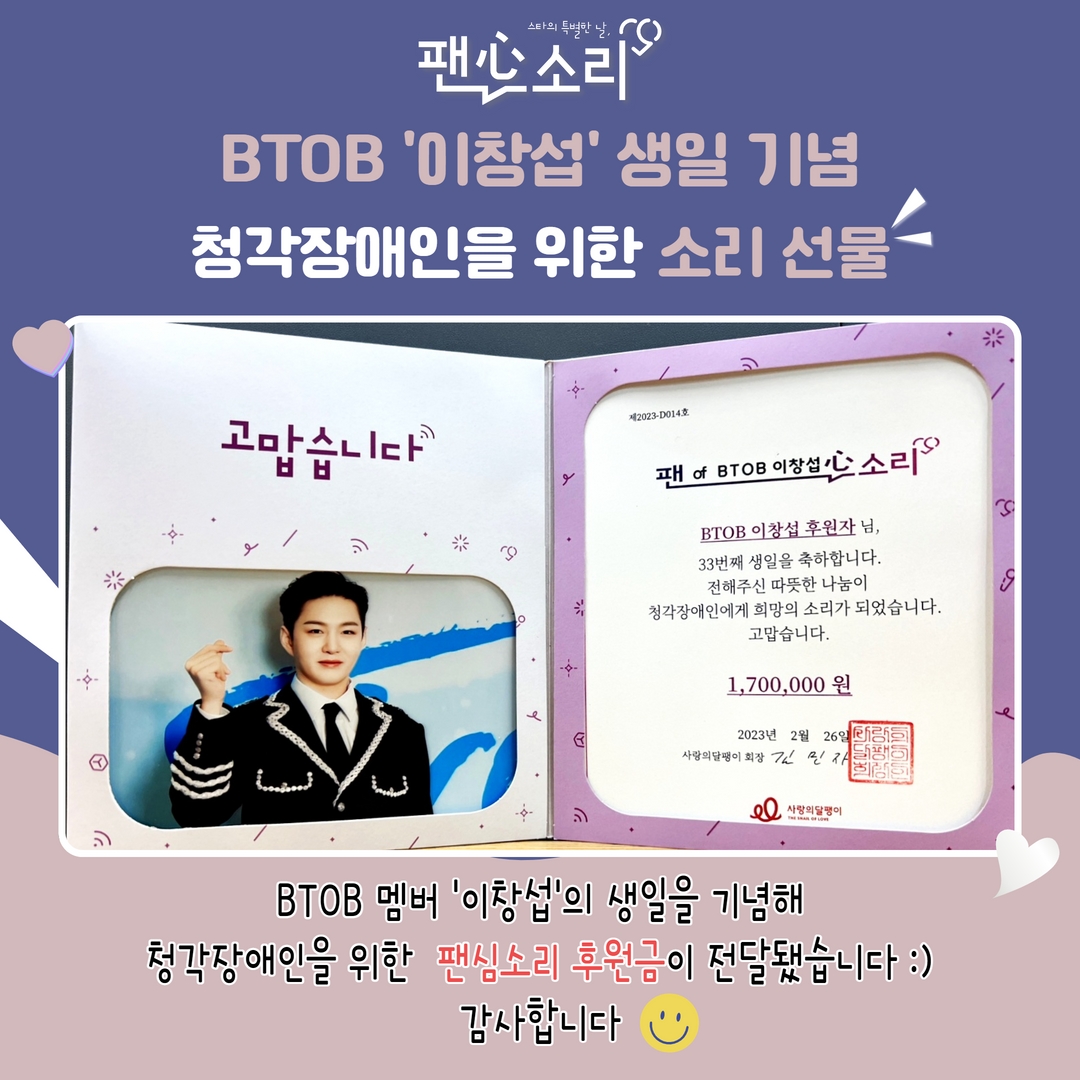 특별한 날 청각장애인을 위한 소중한 소리 선물로 빛내주시는 따뜻한 팬분들이 있습니다.