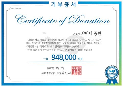 기념으로 중국팬클럽 #BeautyMin 에서 청각장애인을 위해 100만원을 기부해주었어요. 멋진 스타 멋진 팬클럽!