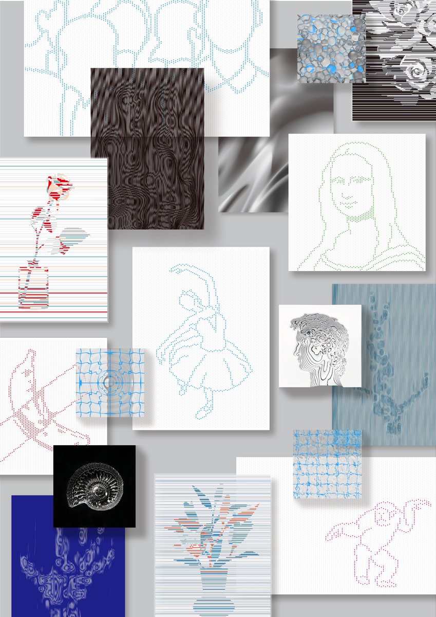 「層」をテーマに6種類の技法を考案し、その仕組みを用いて「像(絵)」を作り出す試みです。