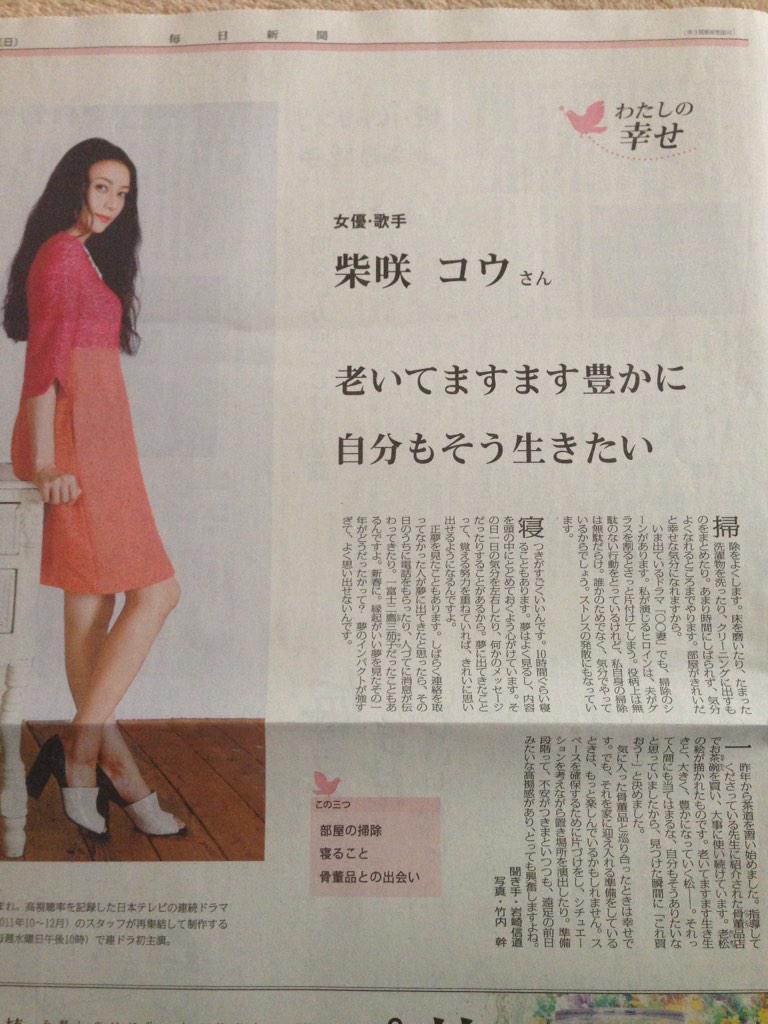 (*^^*) RT @takaaki2028: @ko_shibasaki 毎日新聞、日曜くらぶ「わたしの幸せ」読みました。部屋の掃除と寝ること、健康でいるためにも大切ですね。