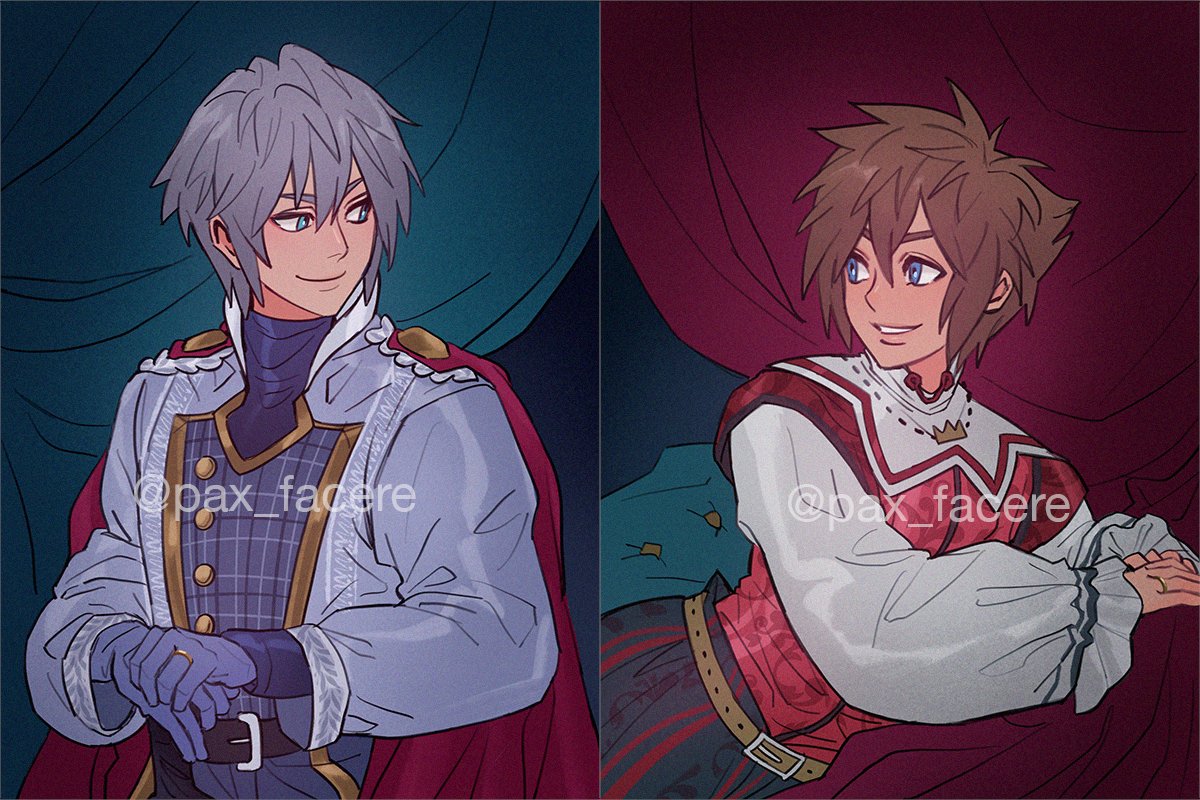 commissions for @pax_facere (!!!!) who commissioned me to draw sora and riku in a royal/prince AU!! ✨👑✨