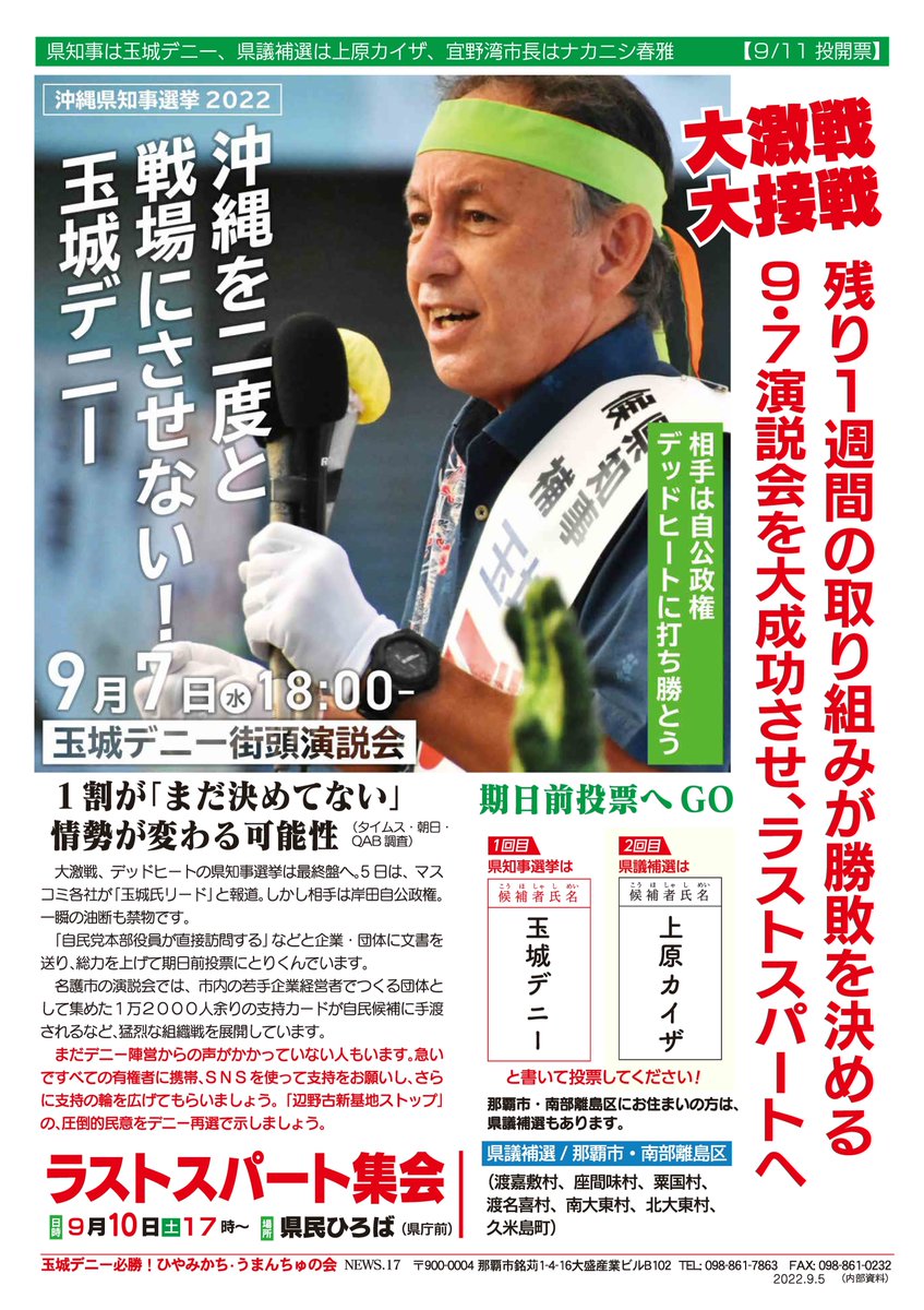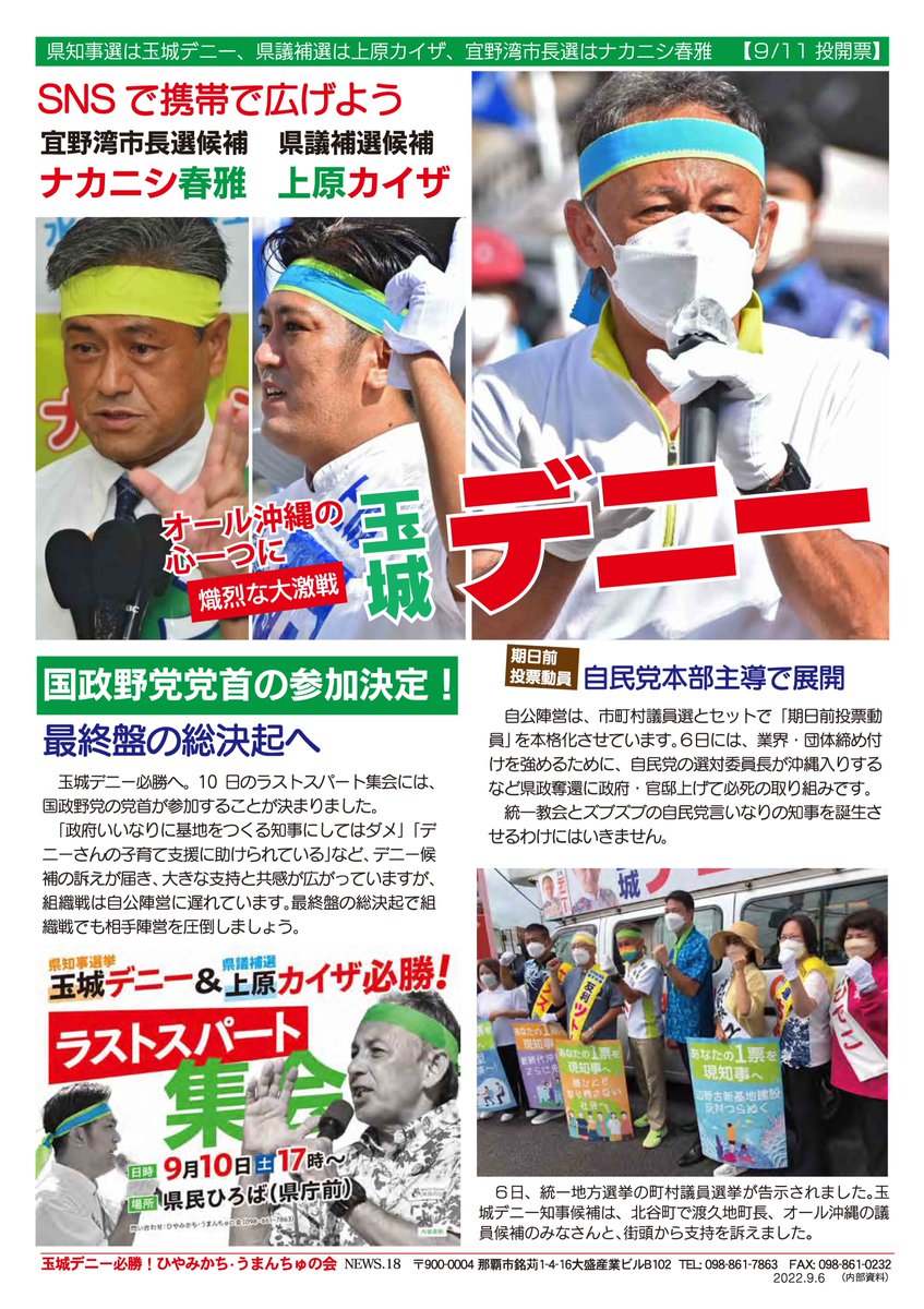 オール沖縄・島ぐるみの総力をあげ、全県から #オナガ雄治 の支持拡大を、今日から全力で取り組みましょう!