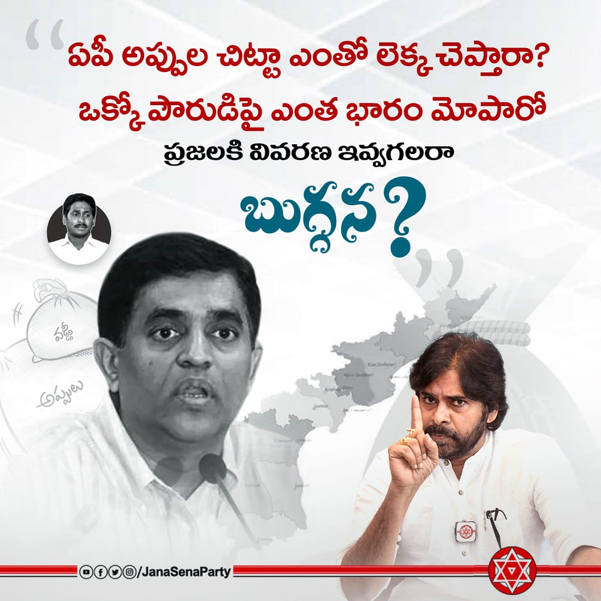 ఏపీ అప్పుల చిట్టా ఎంతో లెక్క చెప్తారా @BugganaRaja? ఒక్కో పౌరుడిపై ఎంత భారం మోపారో ప్రజలకి వివరణ ఇవ్వగలరా? twitter.com/TrendPSPK/stat…