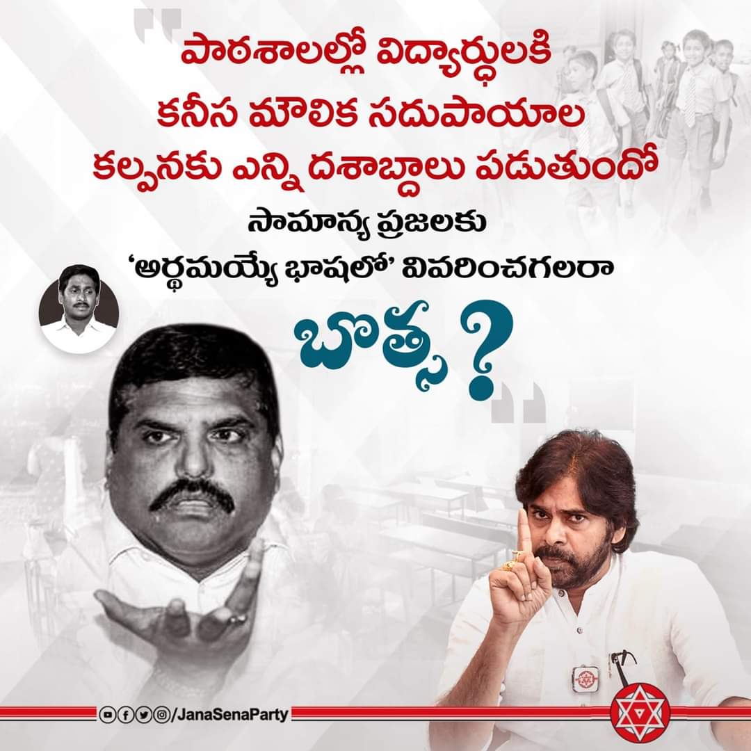 పాఠశాలల్లో విద్యార్ధులకి కనీస మౌలిక సదుపాయాల కల్పనకు ఎన్ని దశాబ్దాలు పడుతుందో సామాన్య ప్రజలకు అర్దమయ్యే భాషలో వివరించగలరా @BotchaBSN ?