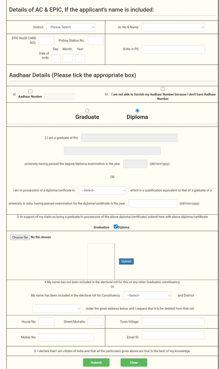పైన లింక్ లో Form-18 లో మీ పేరు, చిరునామా, ఆధార్ నెంబర్, శాసనసభ ఓటు ఓటు వుంటే ఆ వివరాలు ఇచ్చి Graduate MLC ఓటు కోసం దరఖాస్తు చేసుకోవాలి