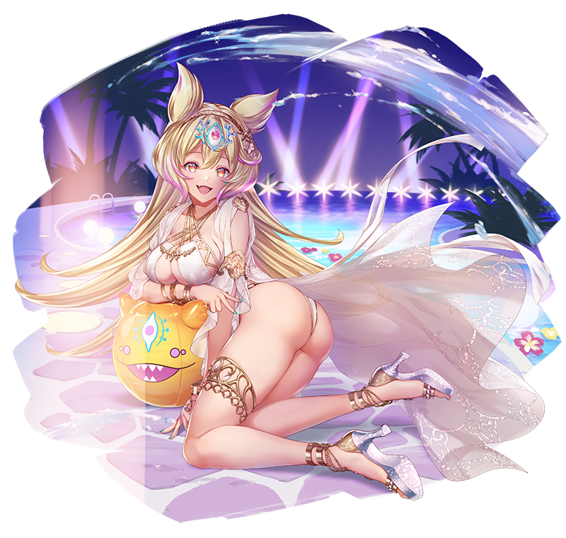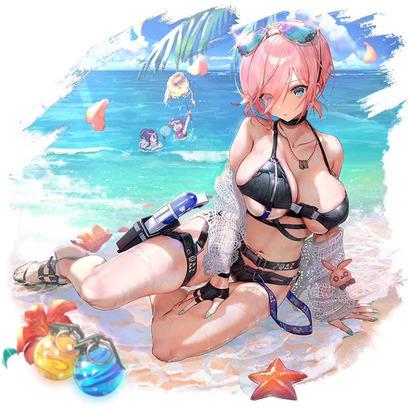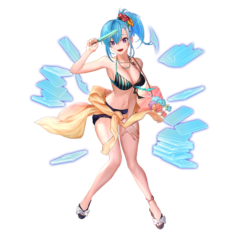明日、ご登場予定の「[水]バレット、[火]ディオネ、[樹]マルール、[火]レイン」さんのアプリ内イラストを先行して公開いたします♪今年の夏も水着ユニットが追加されますが、皆さんのイメージにあっている水着で素敵ですね♪ #クリプト
