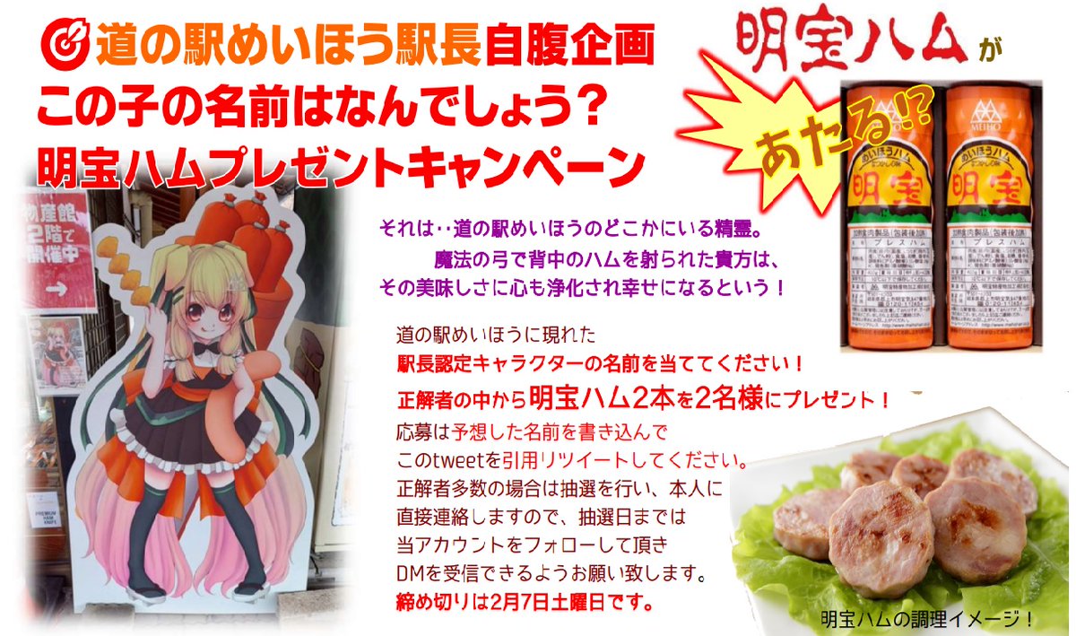 フォロー&リツイートキャンペーン✨すると抽選で5名様に明宝ハム(2本セット)が当たる!