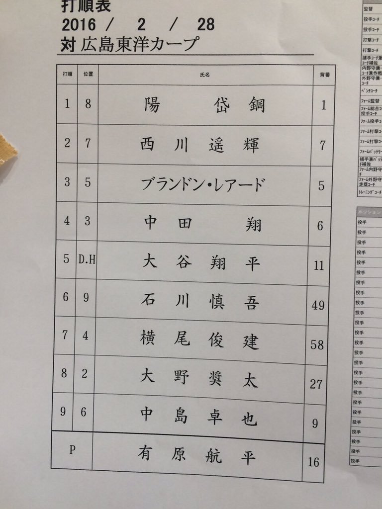 本日のスタメンです!7番に下水流選手! #carp
