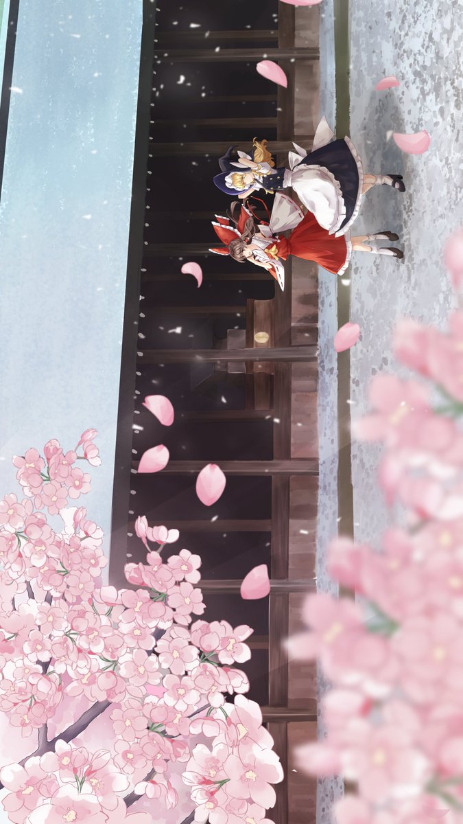 霊夢と魔理沙と桜