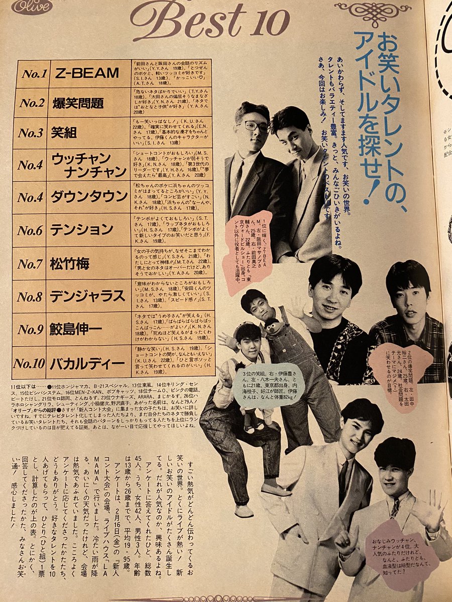 お笑いタレントベスト10(オリーブ/1990年)