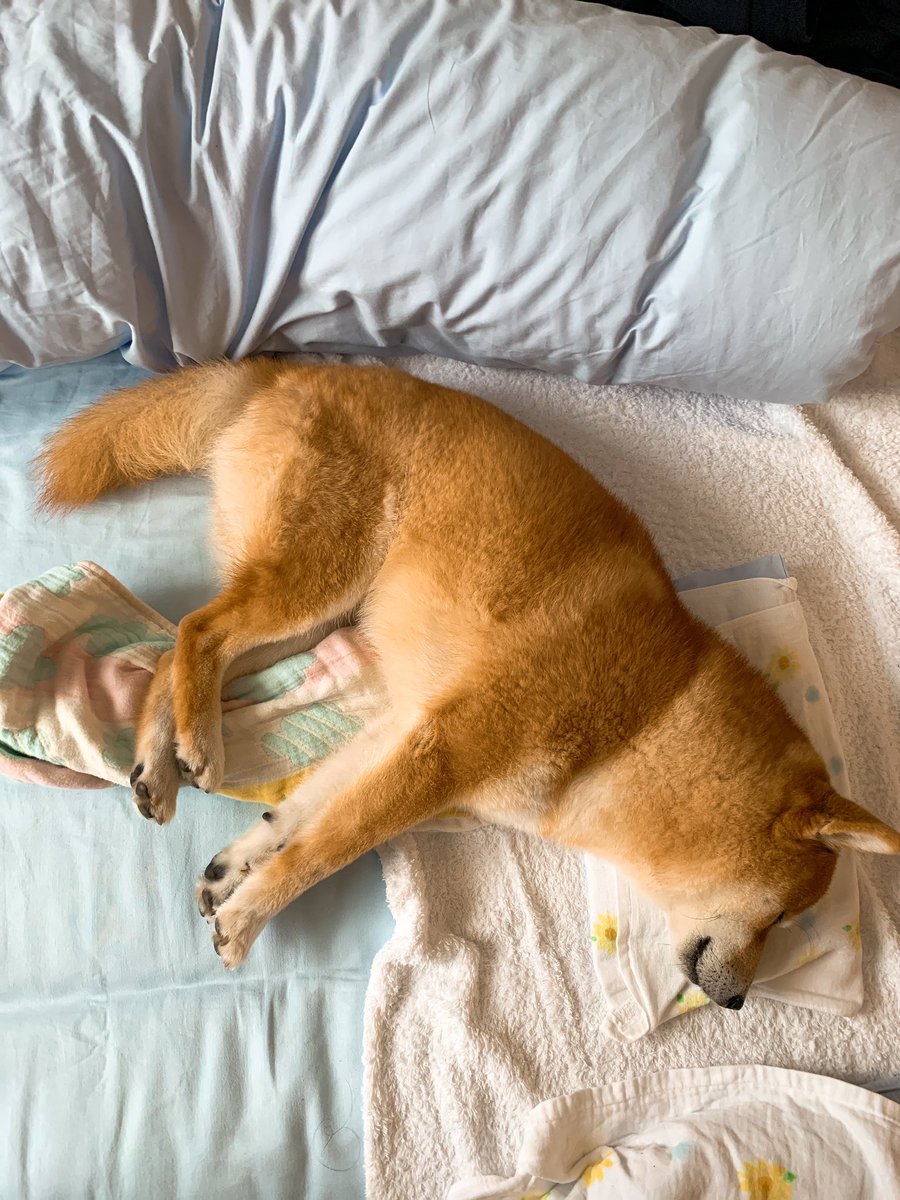 最近弟分と昼寝したがるこたろう、今日に至っては弟分の枕とブランケットを使って堂々と前入り昼寝をしていた