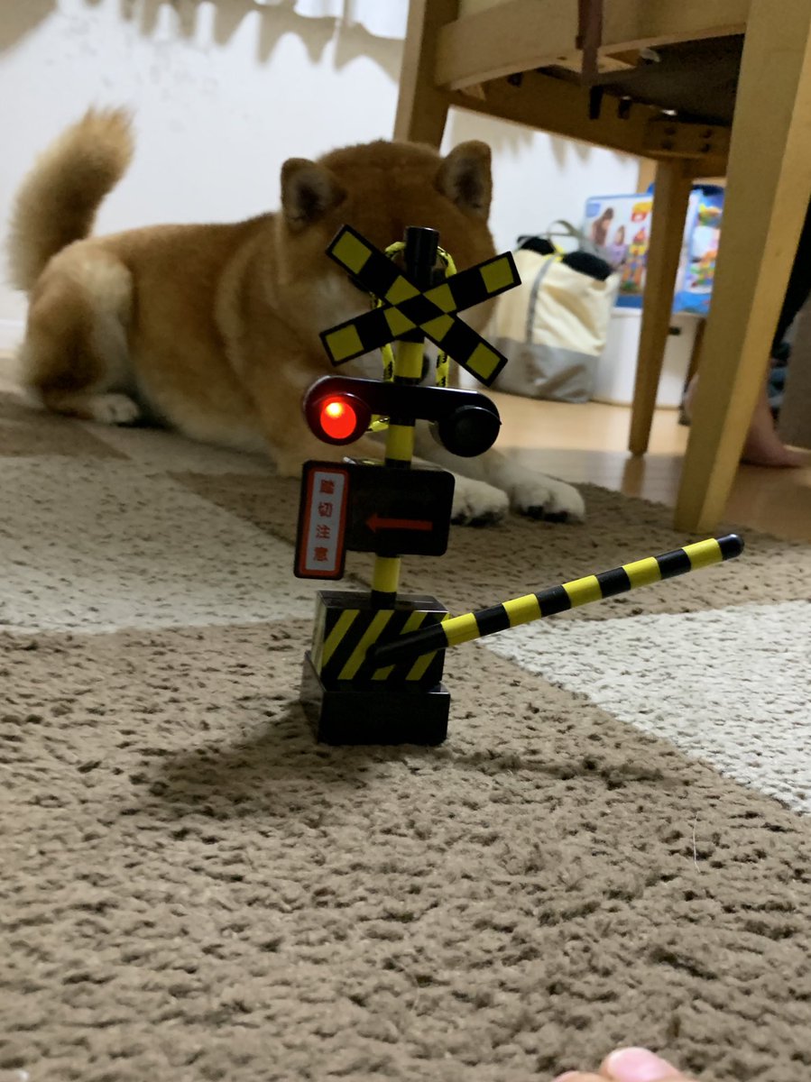踏切が開くのを待つ犬