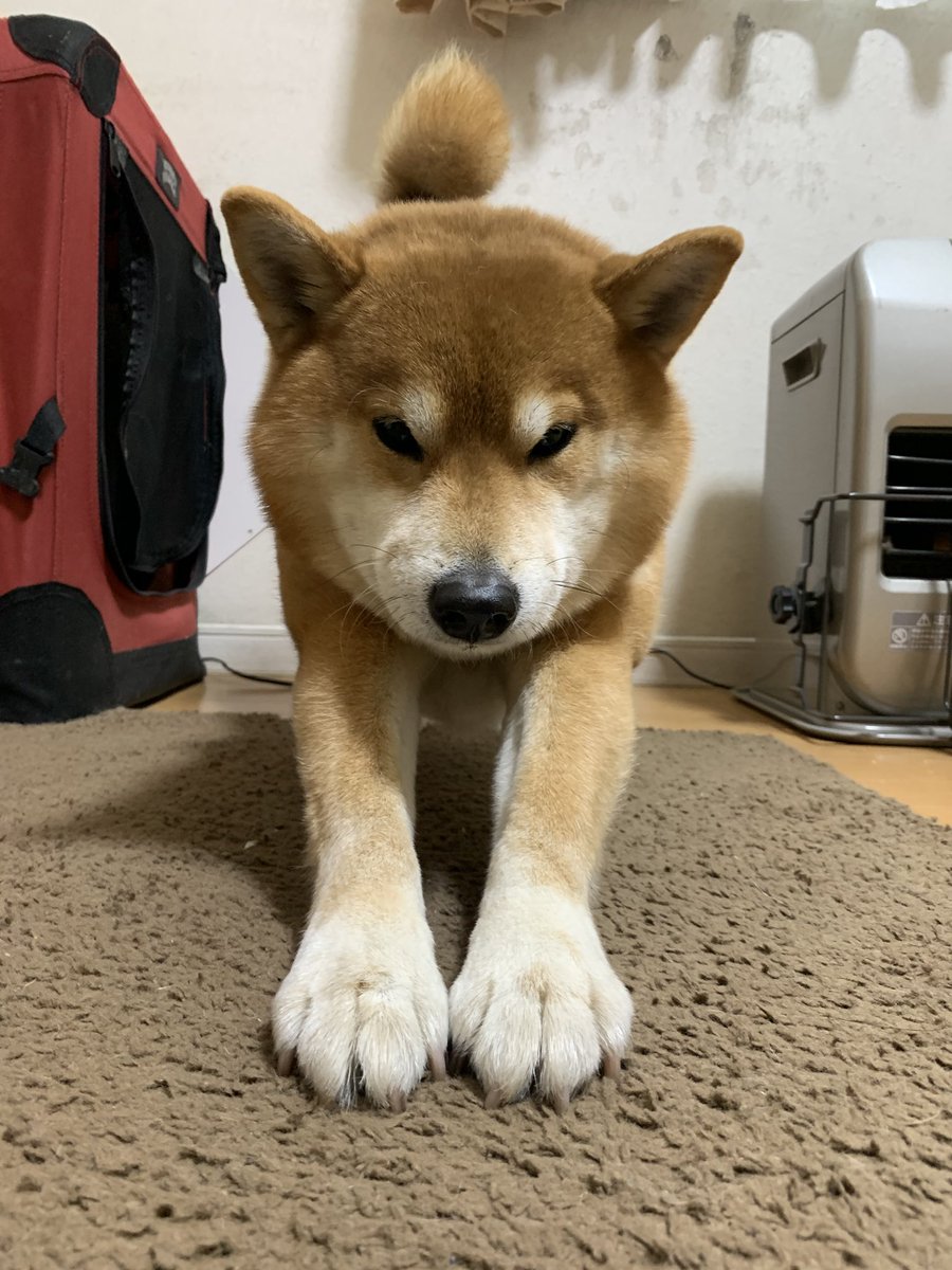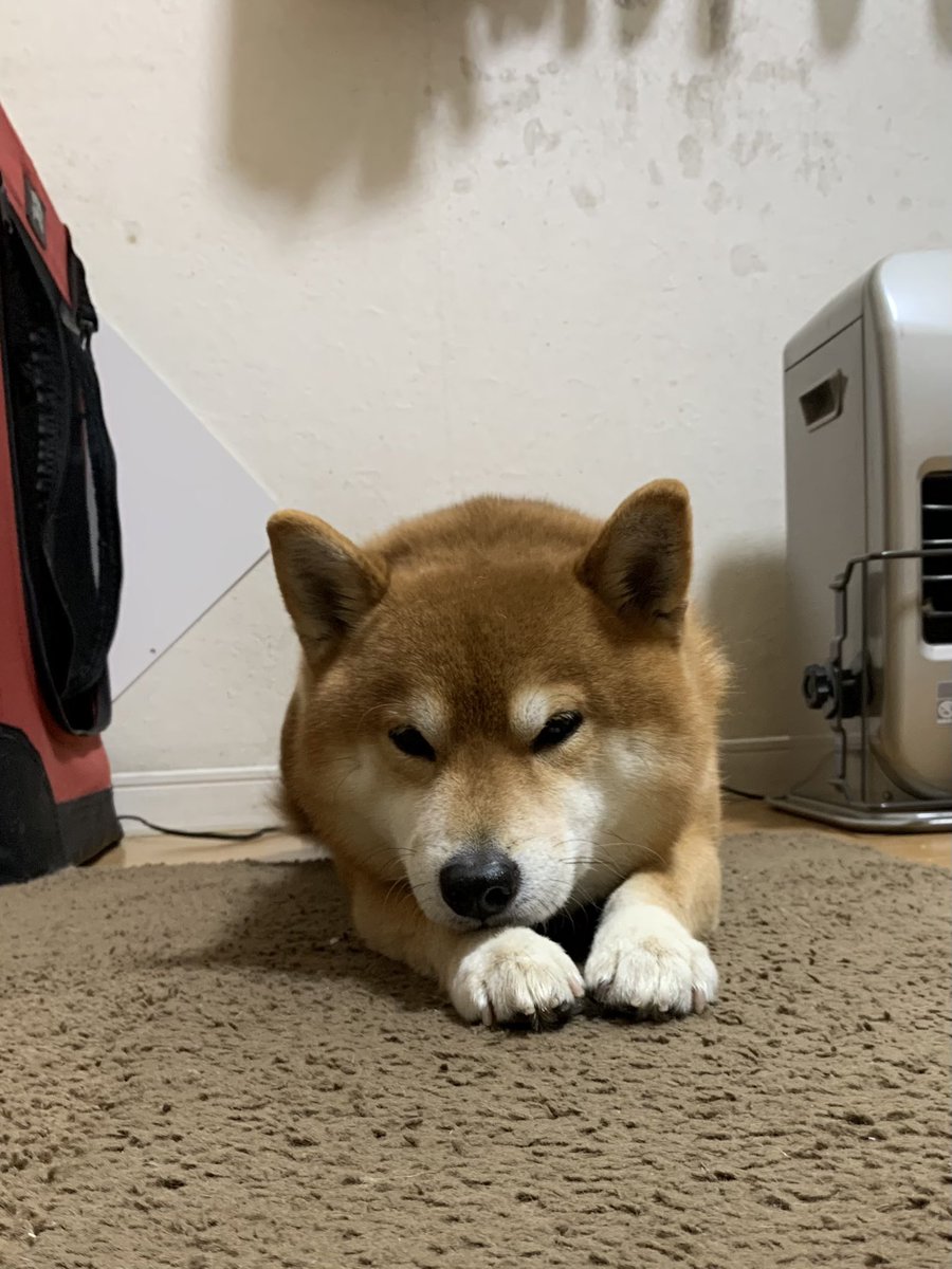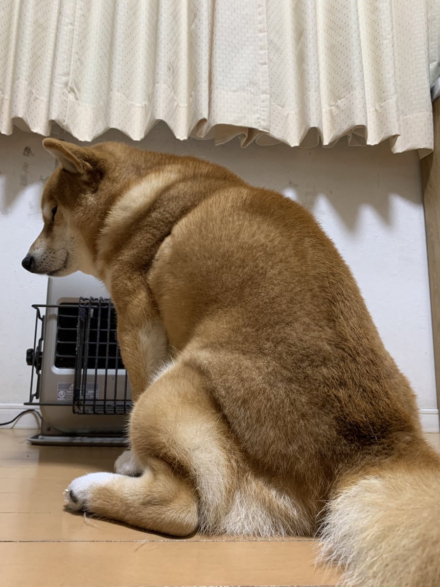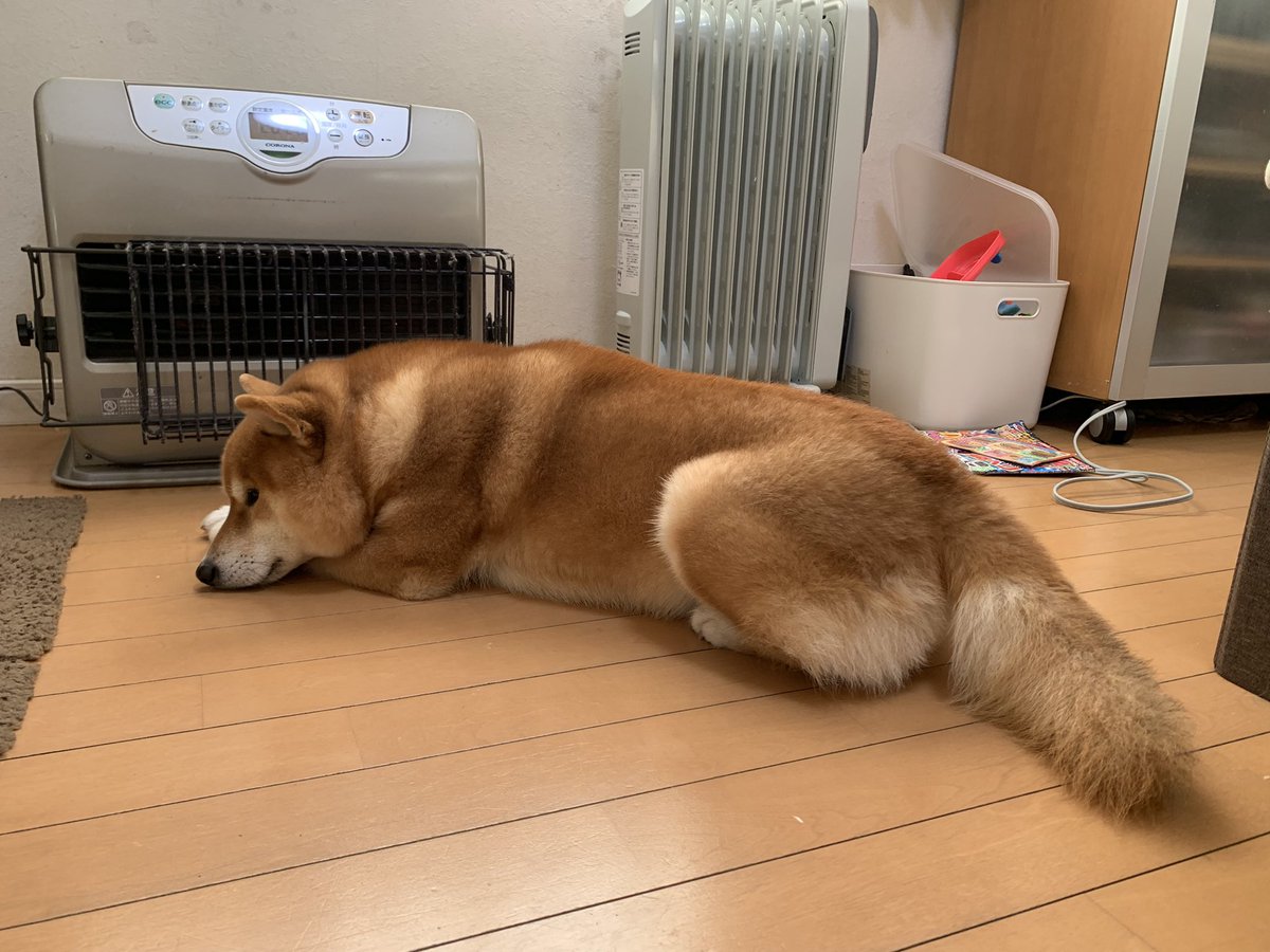 早くストーブがついてほしい犬