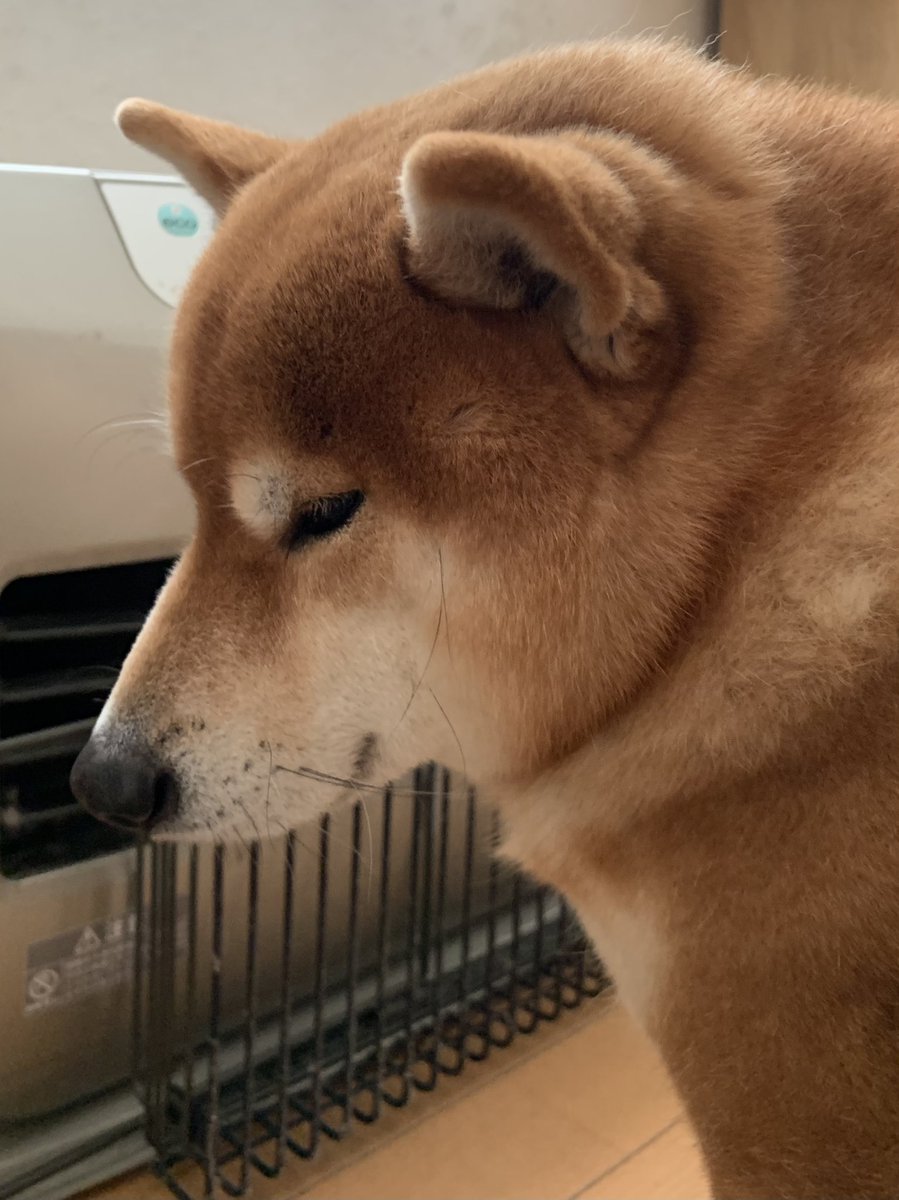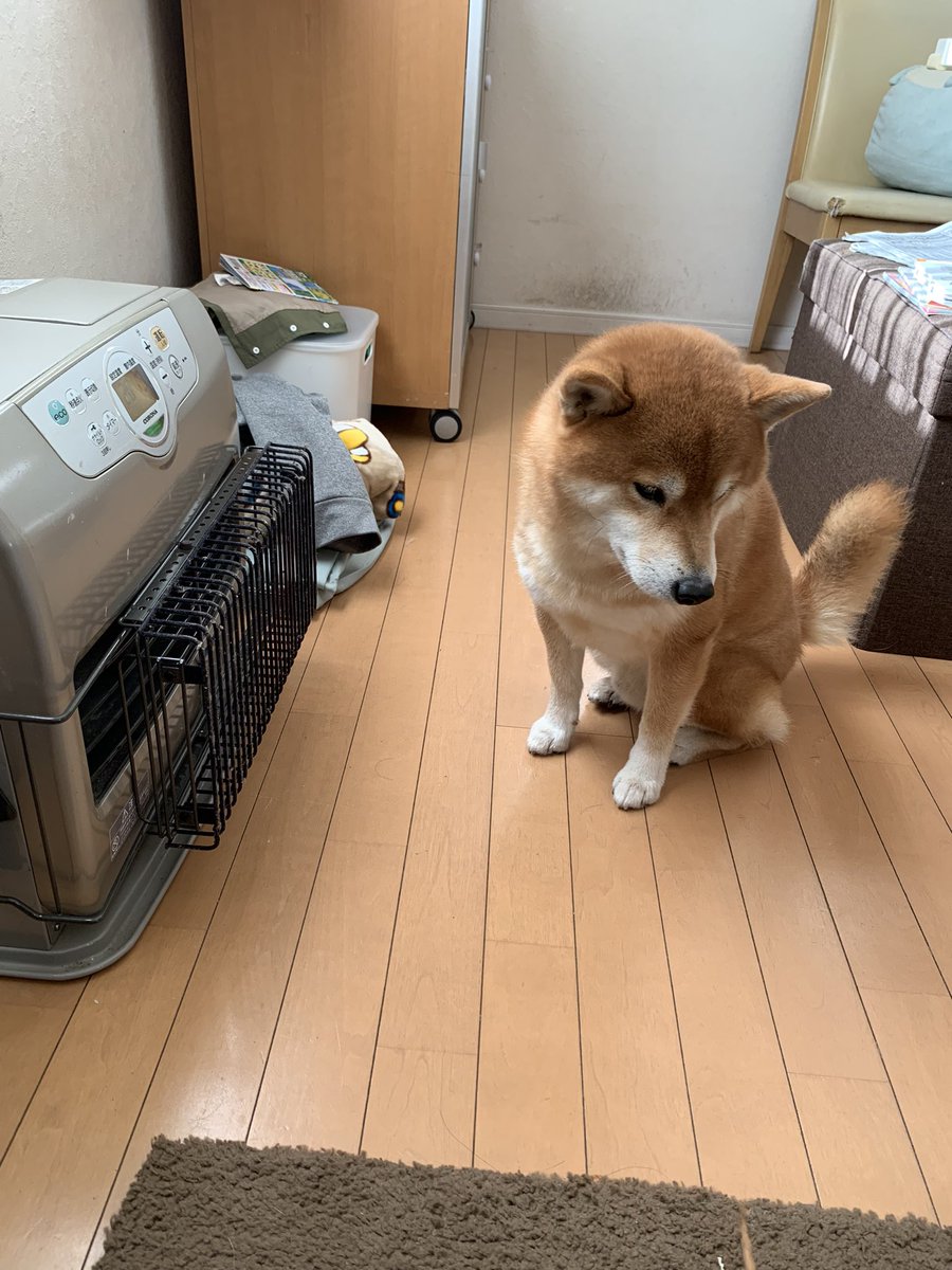 ストーブがついたので駆けつけたのに、飼い主にすぐ消されてしまいガッカリする犬