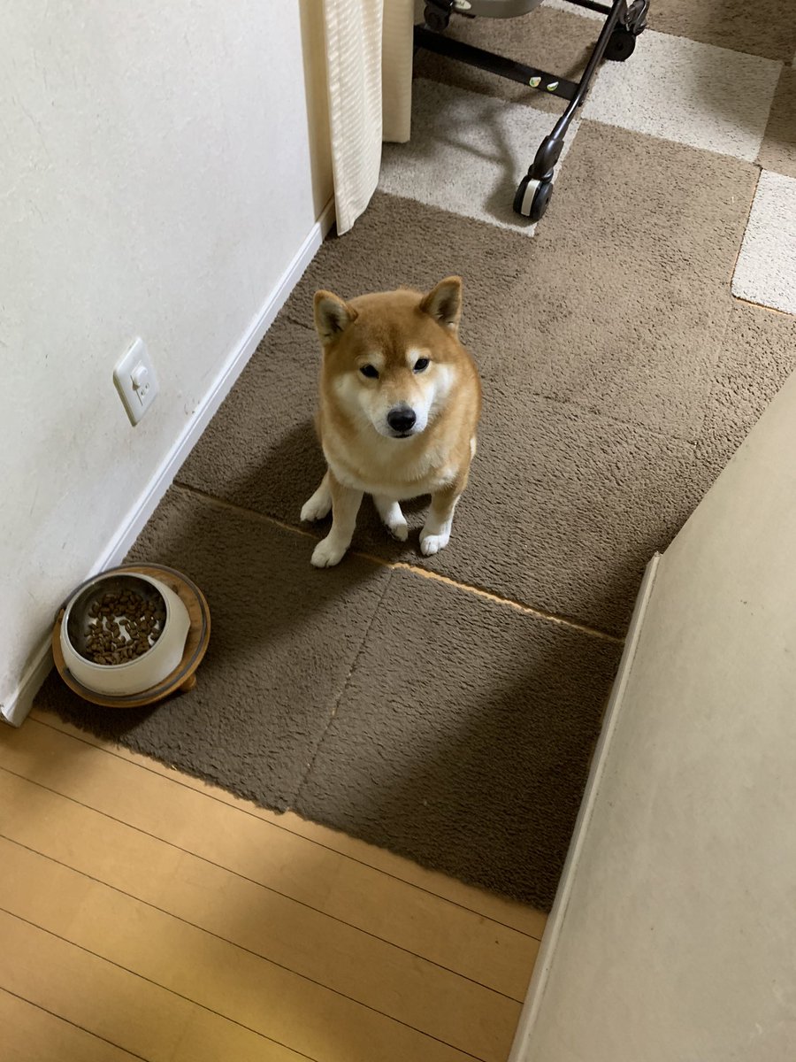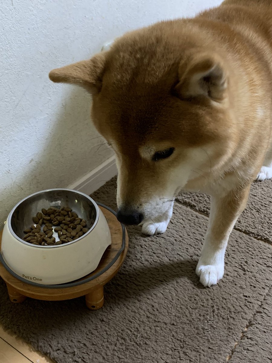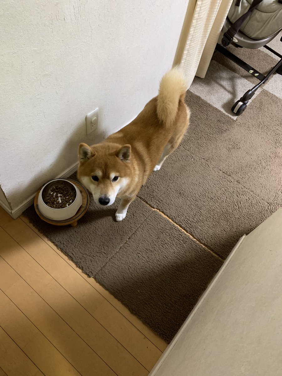 「私の皿にサンマが入ってませんよ?」という顔をする犬