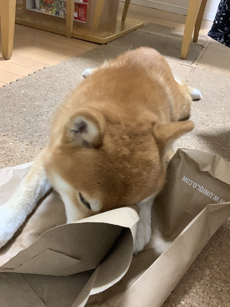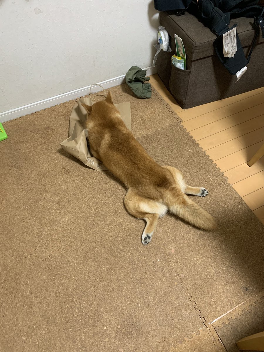 電気が消えている部屋から「ガサガサッ!ガサガサッ!」と物音が聴こえてきて恐る恐る明かりを着けたら、一生懸命紙袋を掘る犬がいた