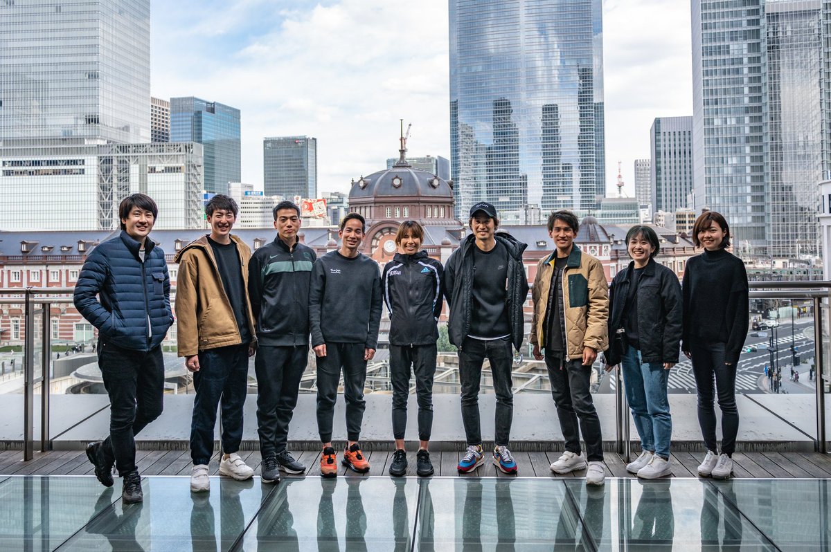 いろんな人に支えられて走った42.195キロ。レース後、号令をかけたわけでもないのに不思議と丸ビルに集合。新谷を支えたのはスタッフだけじゃなかったね。チームメイトも給水ポイントでサポート。一緒に戦いました。