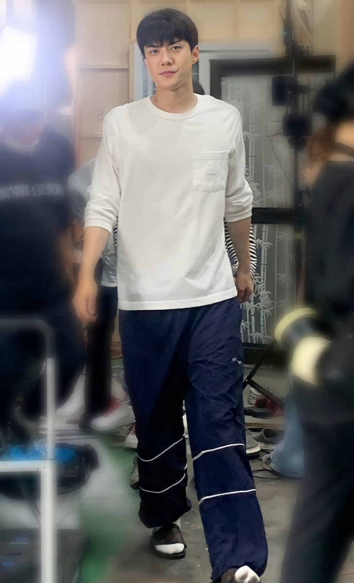 sehun in plain white shirt and shorts 😭🤚🏻