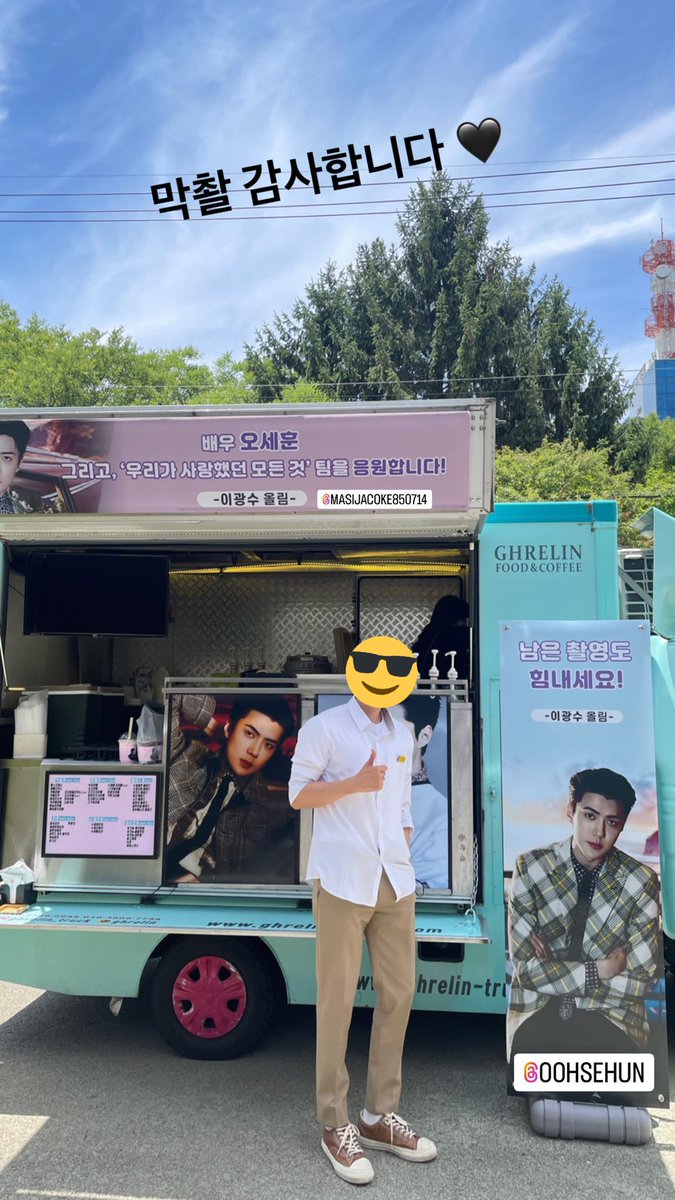 the cast members of ‘우리가 사랑했던 모든 것’ posted about the support truck that lee kwangsoo sent to sehun and tagged both sehun & kwangsoo on their instagram stories as well~! 🚚✨