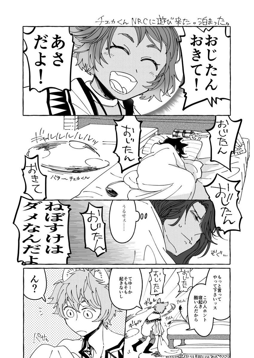 チェカ君が学園のレオナさんのお部屋に遊びにきてしかも無理矢理泊まってった翌朝のお話(とばっちりラギーくん)①