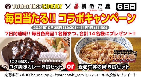 100時間カレー8袋か養老牛丼の具5袋が毎日2名様に当たる🎯