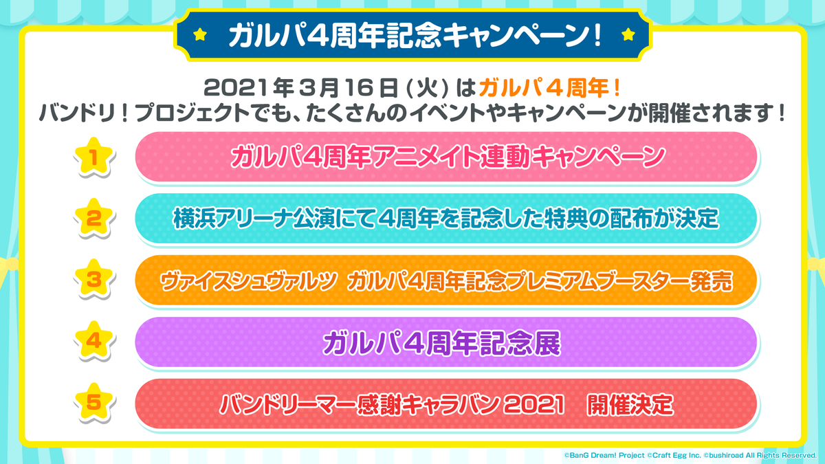 横浜アリーナにて開催されるライブでガルパ4周年を記念した特典の配布が決定✨